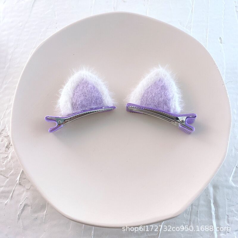 • 봉제 고양이귀 머리핀(보라색)