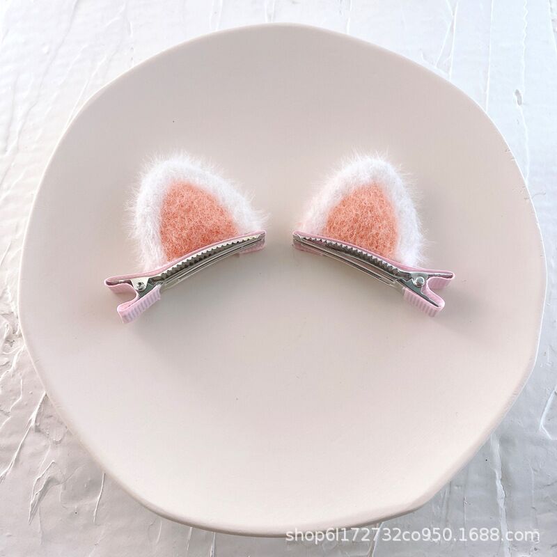 가을과 겨울 봉제 고양이 귀 어린이 헤어핀 귀여운 만화 3 차원 페어 클립 작은 소녀 헤어핀 사이드 클립 한국식 헤어 액세서리