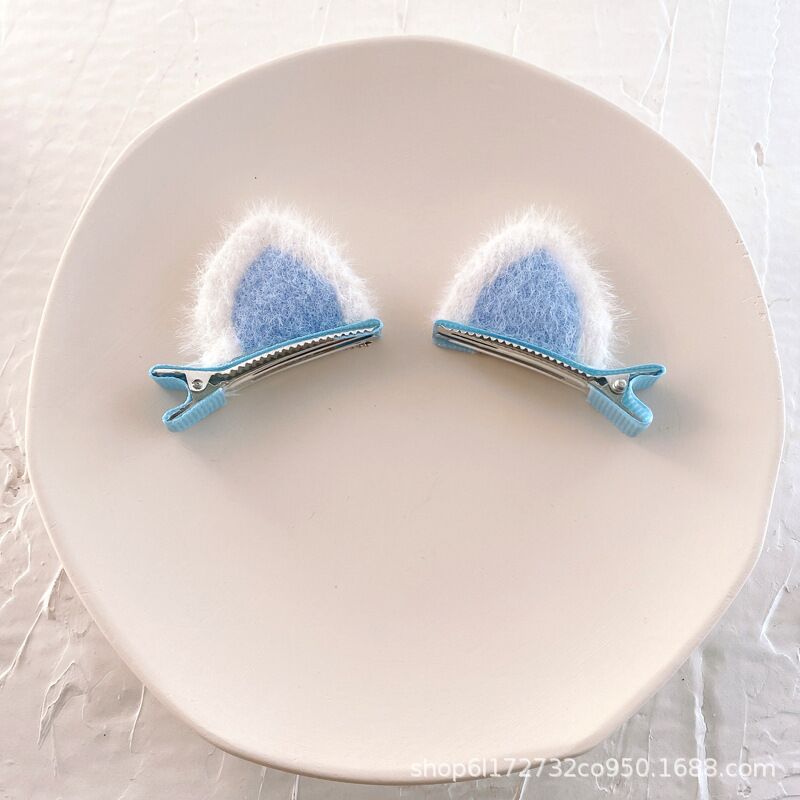 • 봉제 고양이 귀 머리핀 (블루)