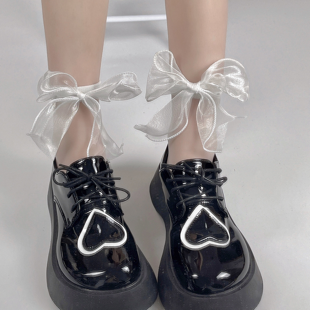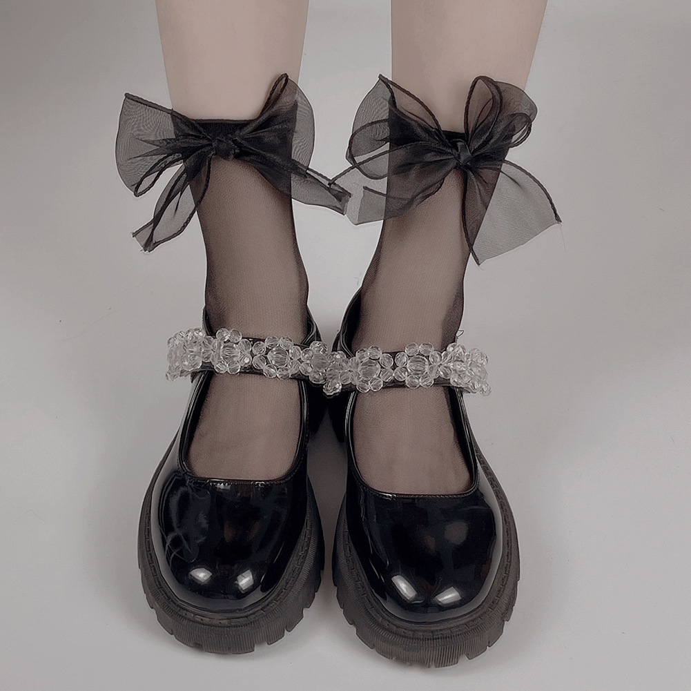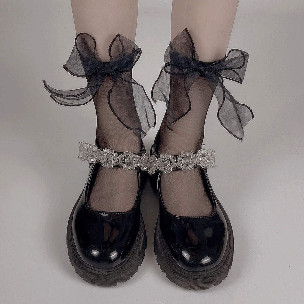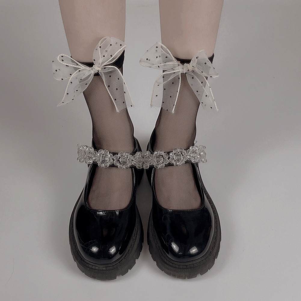 일본 초박형 유리 실크 물방울 무늬 활 짧은 양말 케이스 투명 소녀의 더미 양말 로리타 JK 양말스토어 가기
