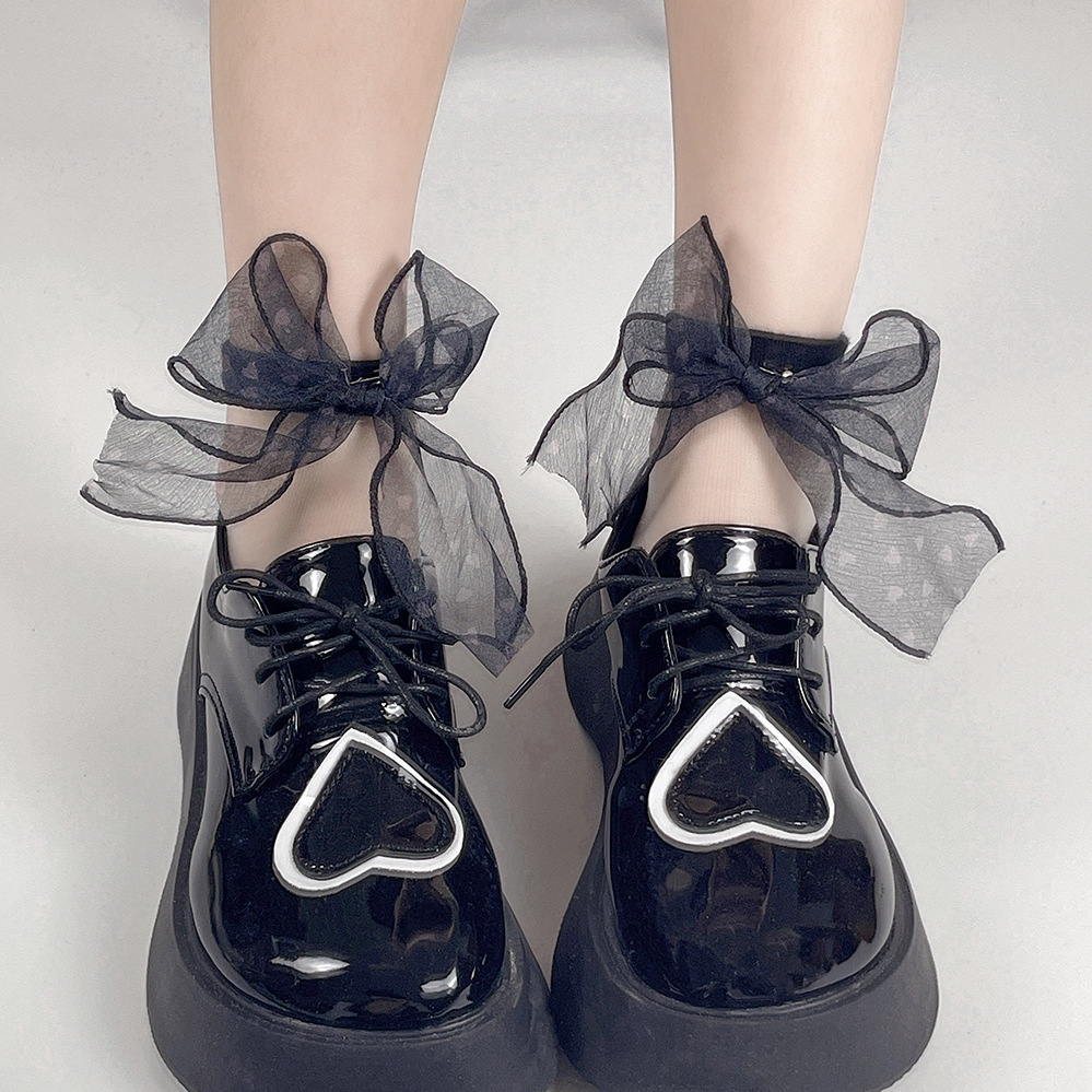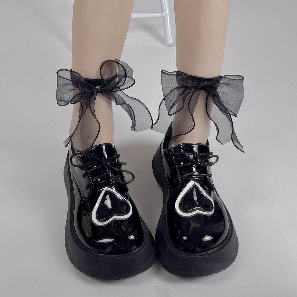 일본 초박형 유리 실크 물방울 무늬 활 짧은 양말 케이스 투명 소녀의 더미 양말 로리타 JK 양말