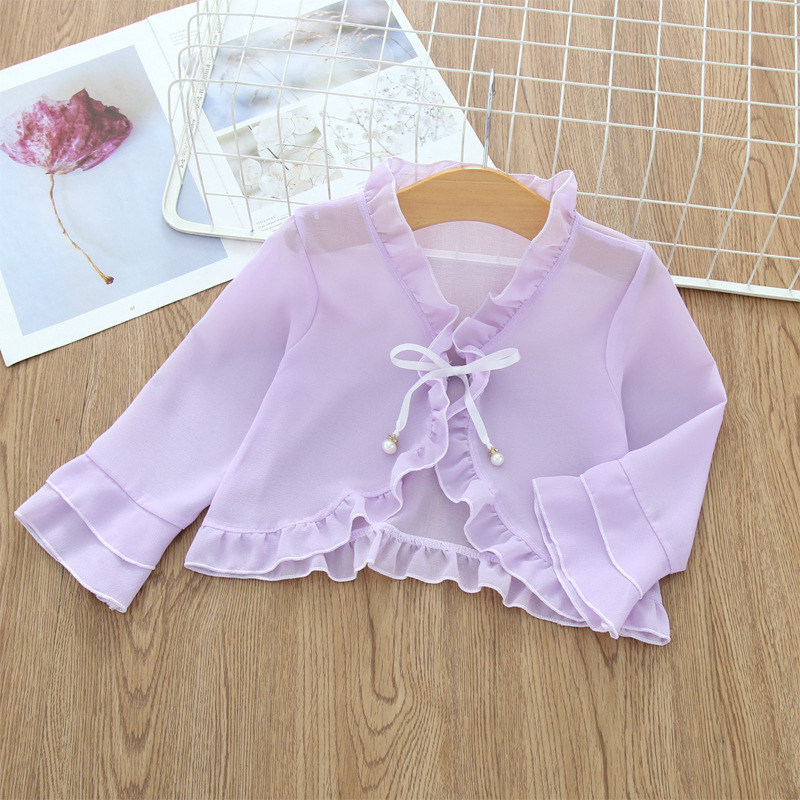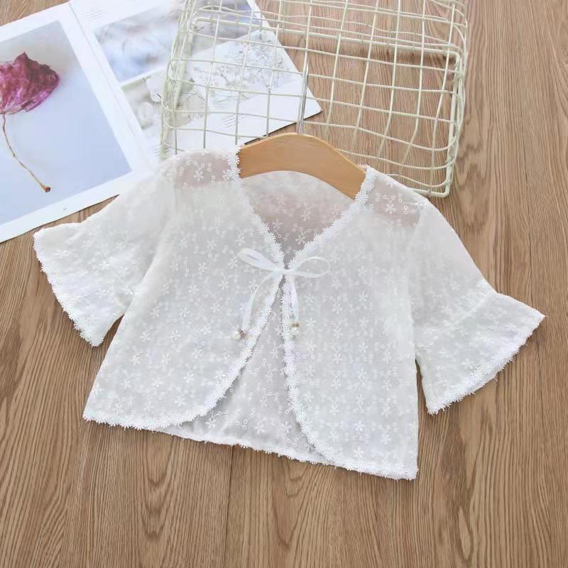 여아 숄 자외선 차단제 케이프 코트 얇은 양복 조끼 공주 아기를위한 중공 카디건 외부스토어 가기
