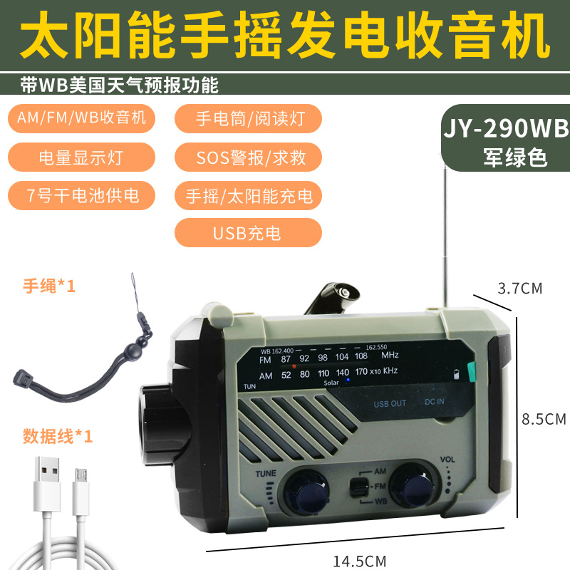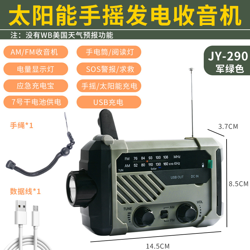 태양광 USB 충전 방재 비상 LED 손전등 가정 야외 학생 기숙사 핸드 파워 라디오