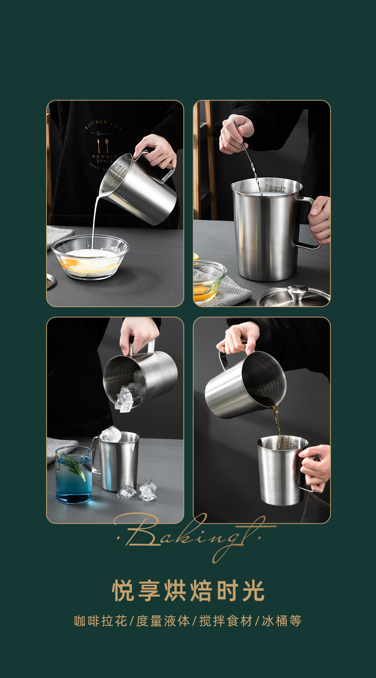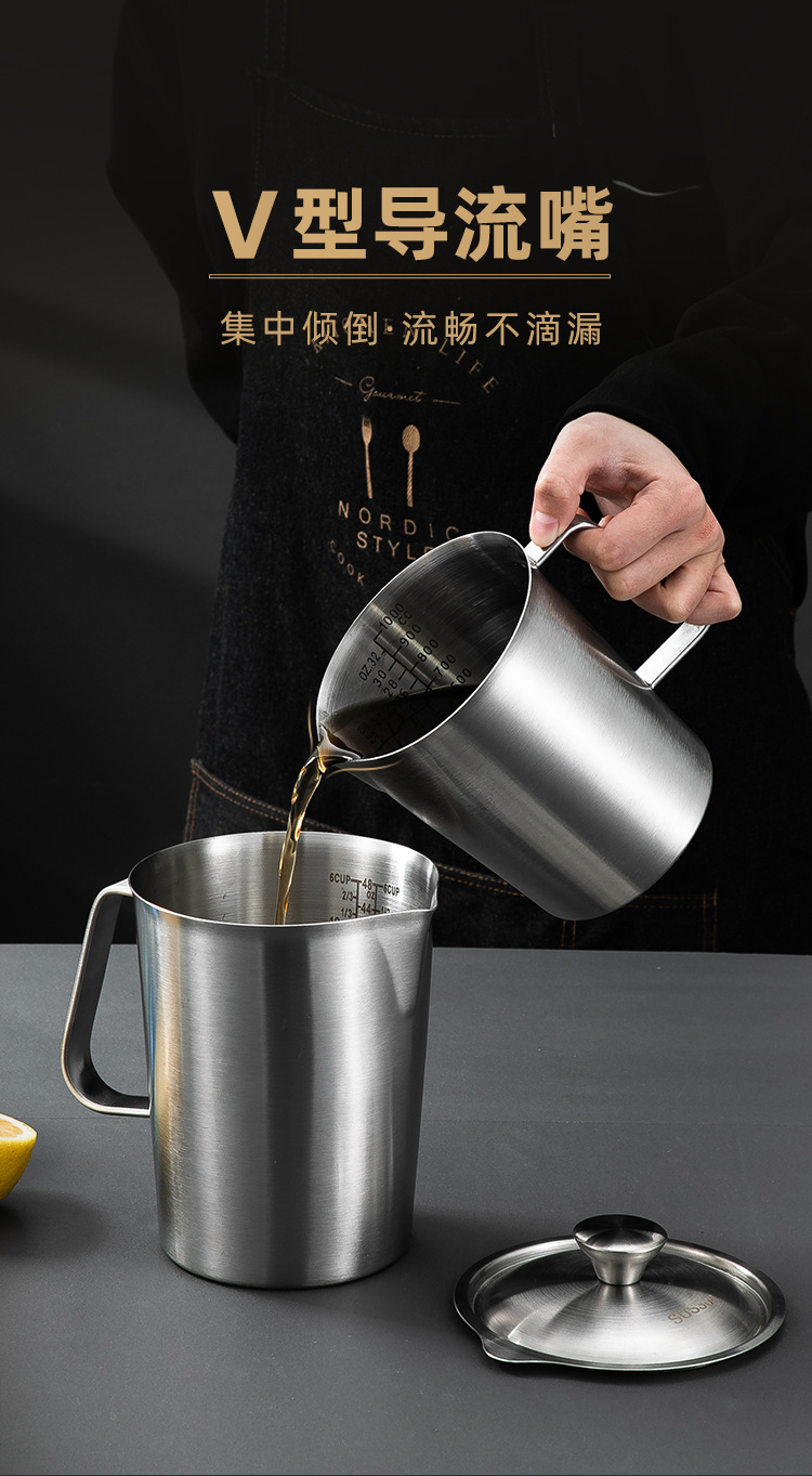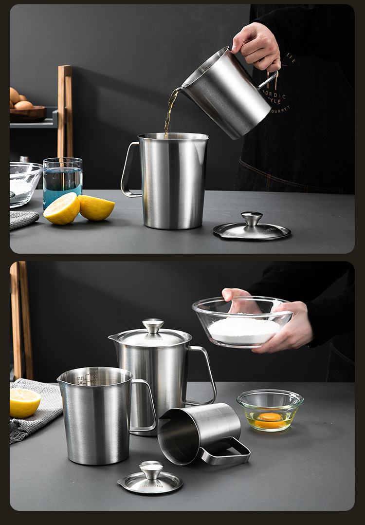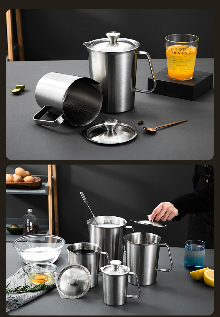 • 304 스테인레스 스틸 측정 컵 1000 mL (뚜껑 포함)