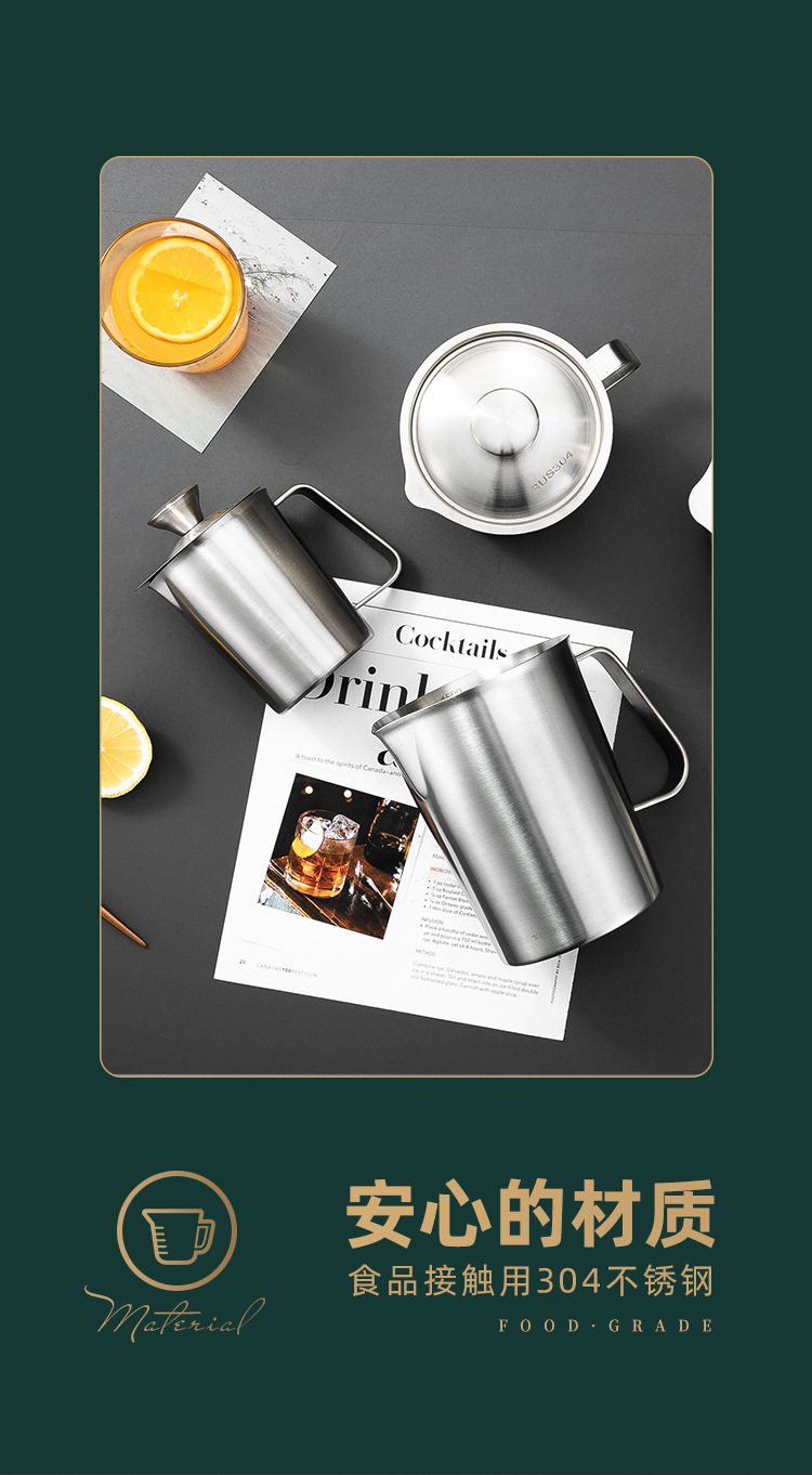 • 304 스테인레스 스틸 측정 컵 2000 mL (뚜껑 포함)