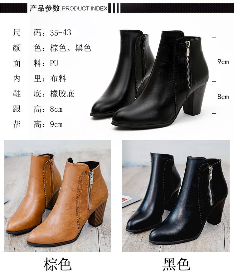 AliExpress 2020 가을, 겨울 유럽과 미국의 복고풍 문지름 색상 두꺼운 뒤꿈치 대외 무역 측면 지퍼 짧은 부츠 여성 공장 도매
