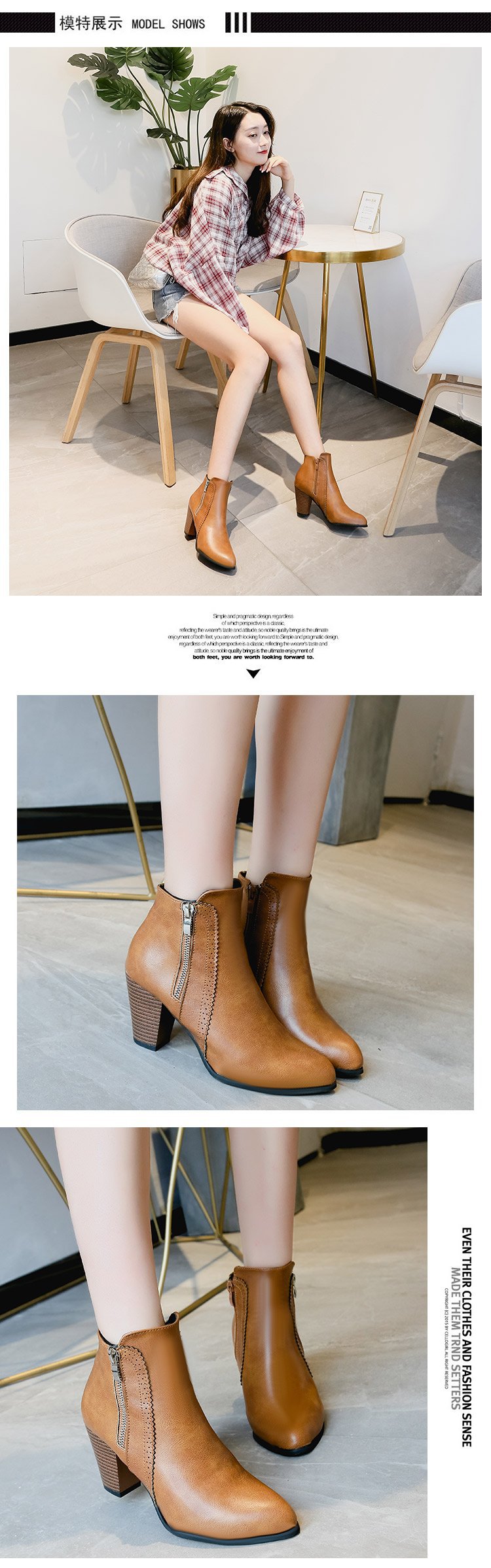 AliExpress 2020 가을, 겨울 유럽과 미국의 복고풍 문지름 색상 두꺼운 뒤꿈치 대외 무역 측면 지퍼 짧은 부츠 여성 공장 도매스토어 가기