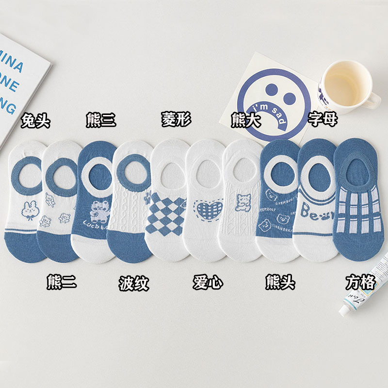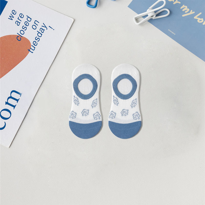 양말 여성용 보이지 않는 양말 여름 얇은 통기성 여성용 모든 매치 보트 양말 미끄럼 방지 및 낙하 방지 여름 파란색 양말