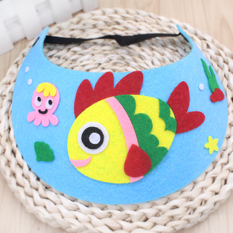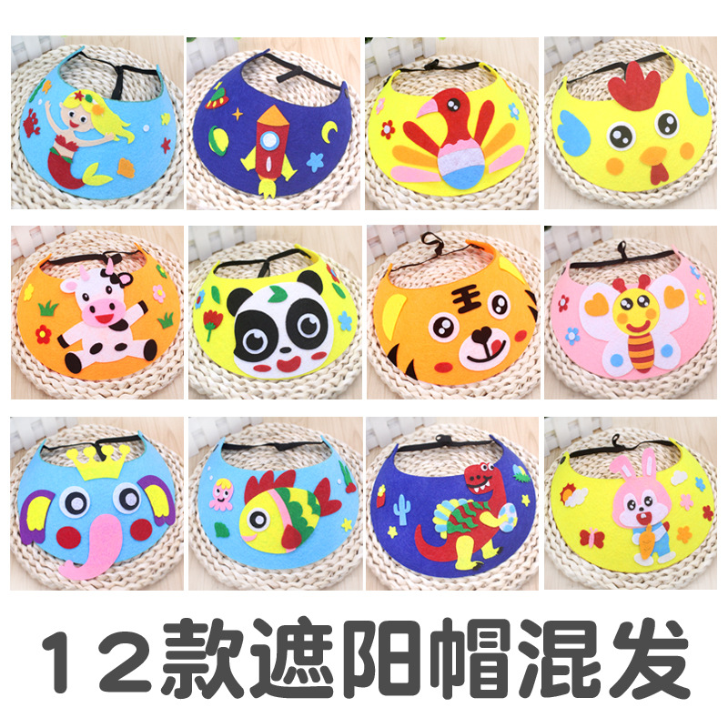 어린이 DIY 태양 모자 동물 스티커 유치원 부직포 모자 수제 크리 에이 티브 장난감 재료 패키지