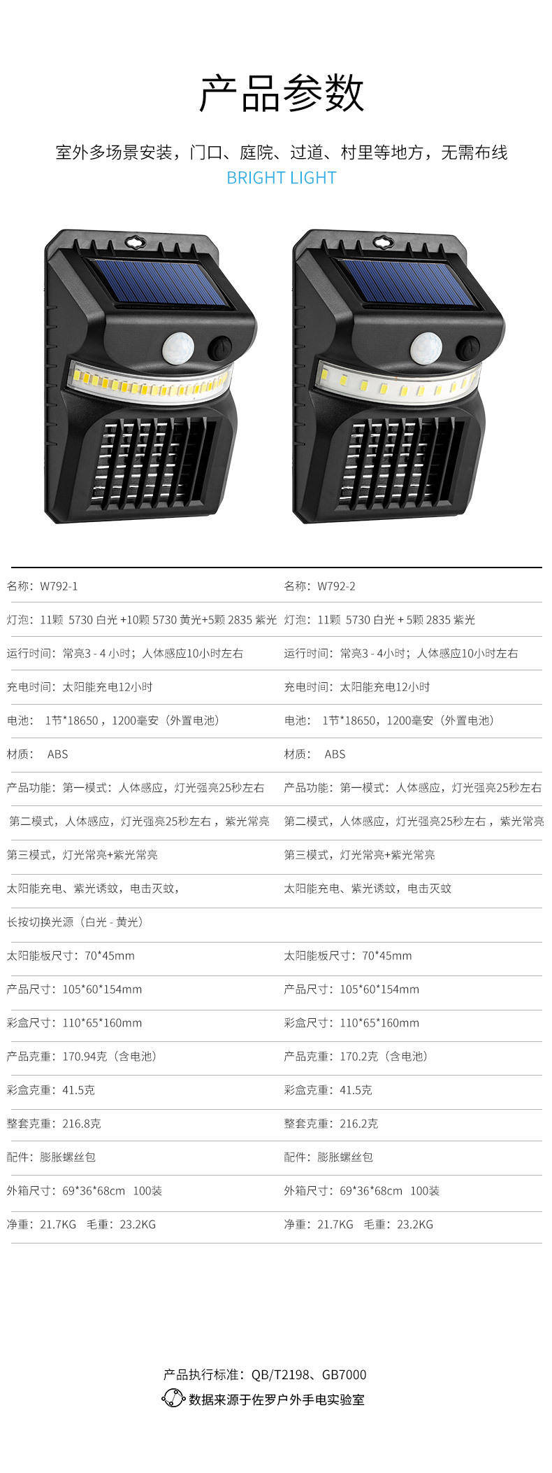 • (화이트 라이트 + 퍼플 라이트 모기) 다기능 태양벽 램프 + 모기램프 W792