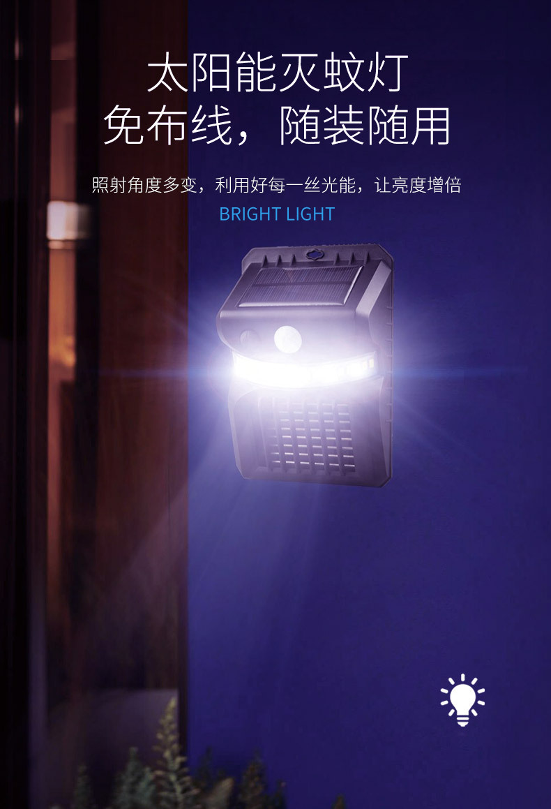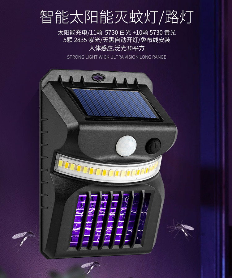 국경을 넘는 신형 LED 태양광 벽등, 모기 퇴치 기능, 인체 지능형 센서, 야외 정원 벽등