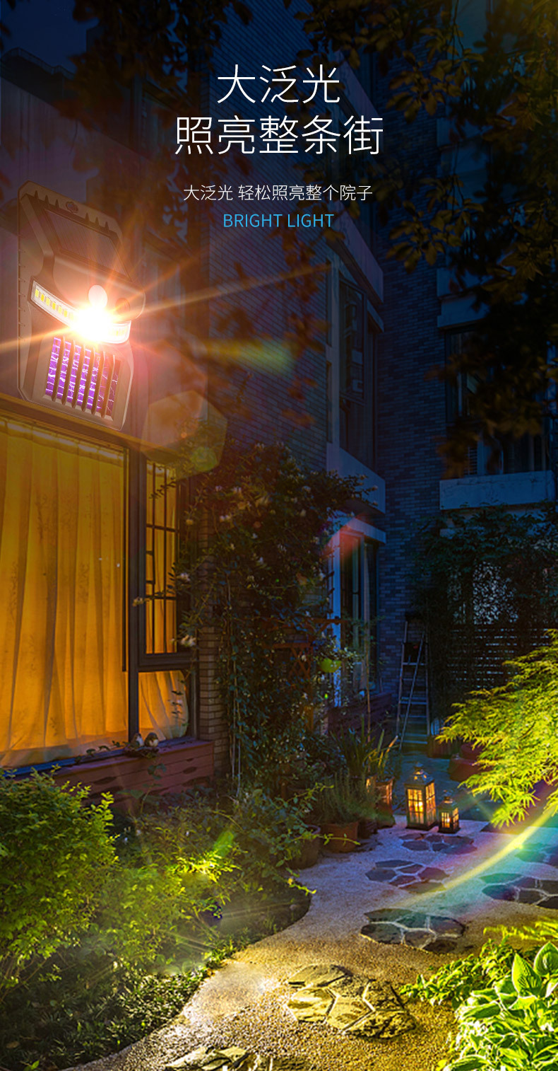 • (화이트 + 옐로우 + 퍼플 라이트 모기) 다기능 태양벽 램프 + 모기등 W792