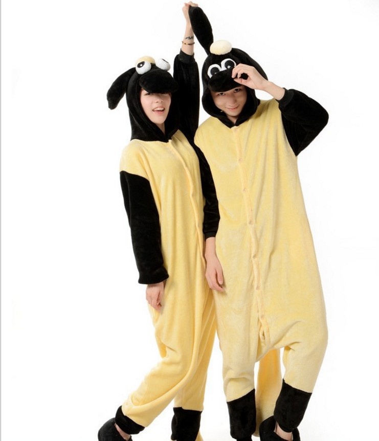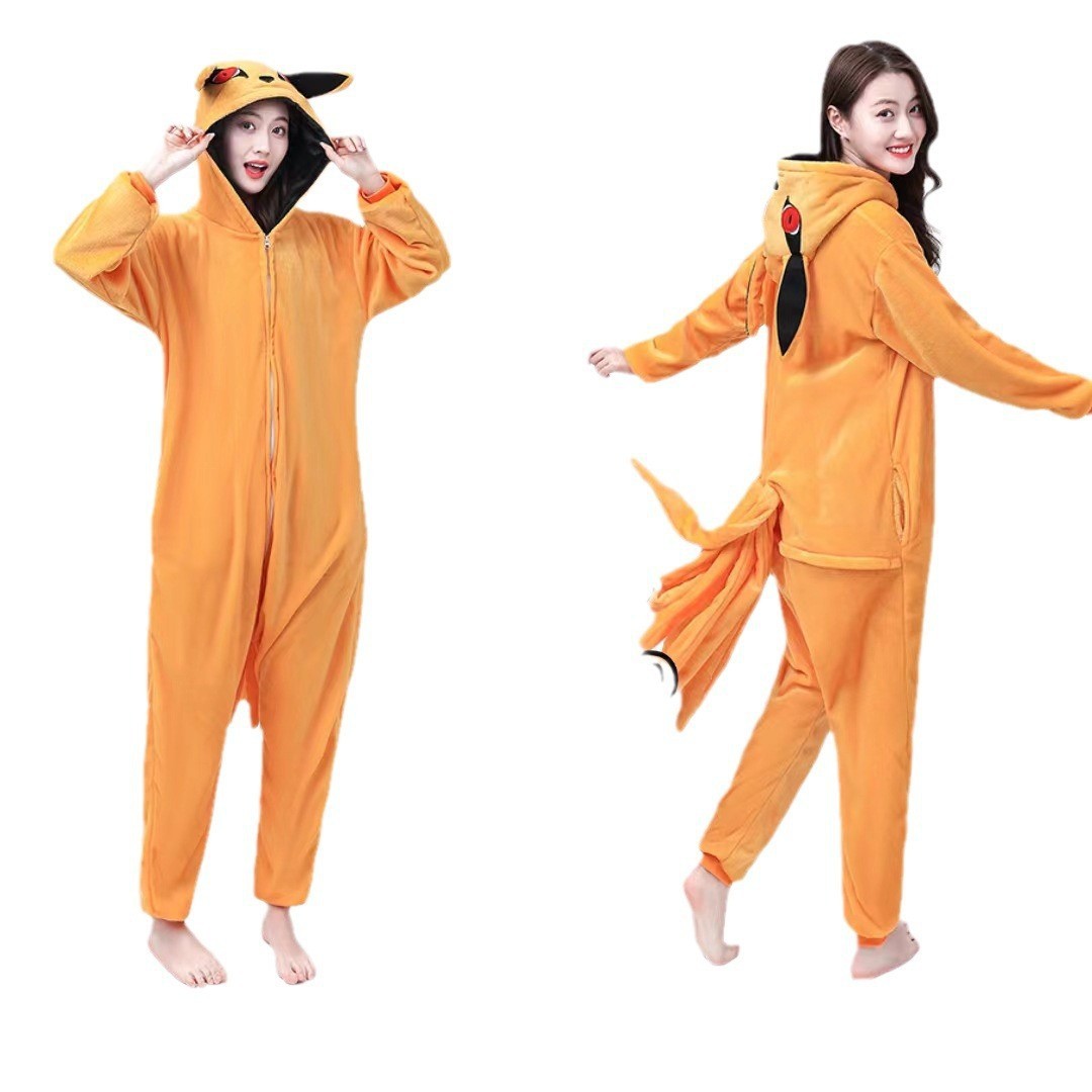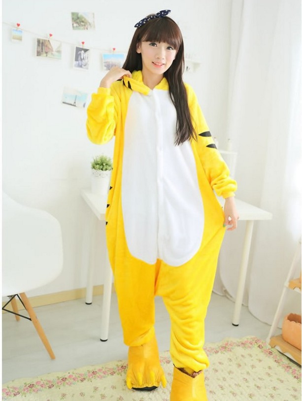 가을, 겨울 호랑이 회색 늑대 플란넬 동물 Zhongli 홈웨어 원피스 잠옷 만화 커플 귀여운 노란색 여우