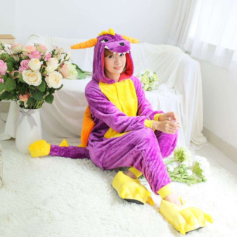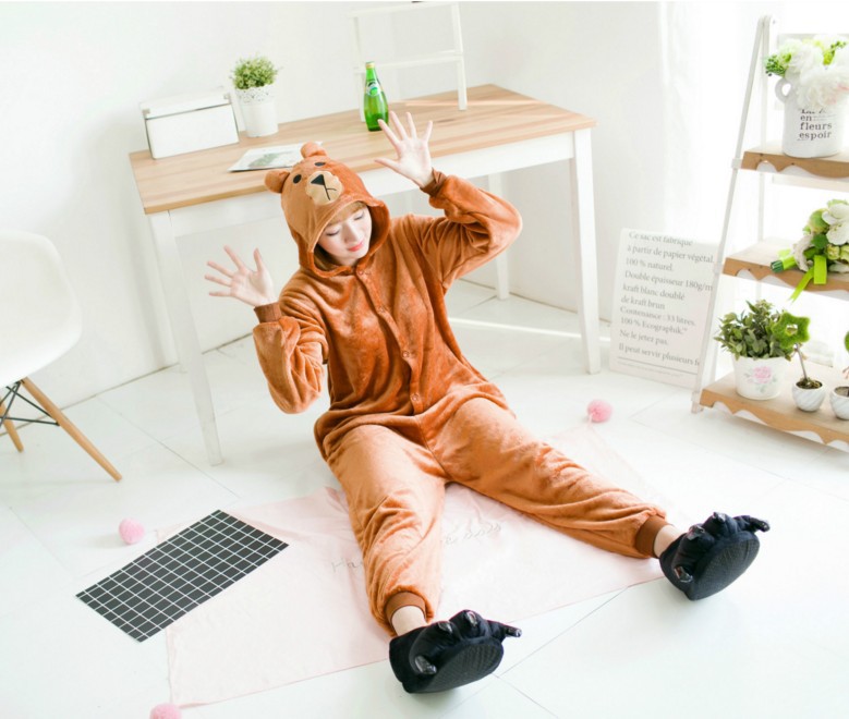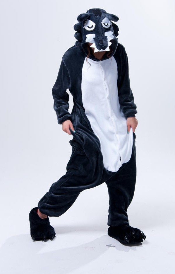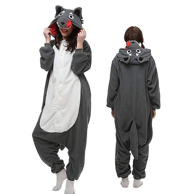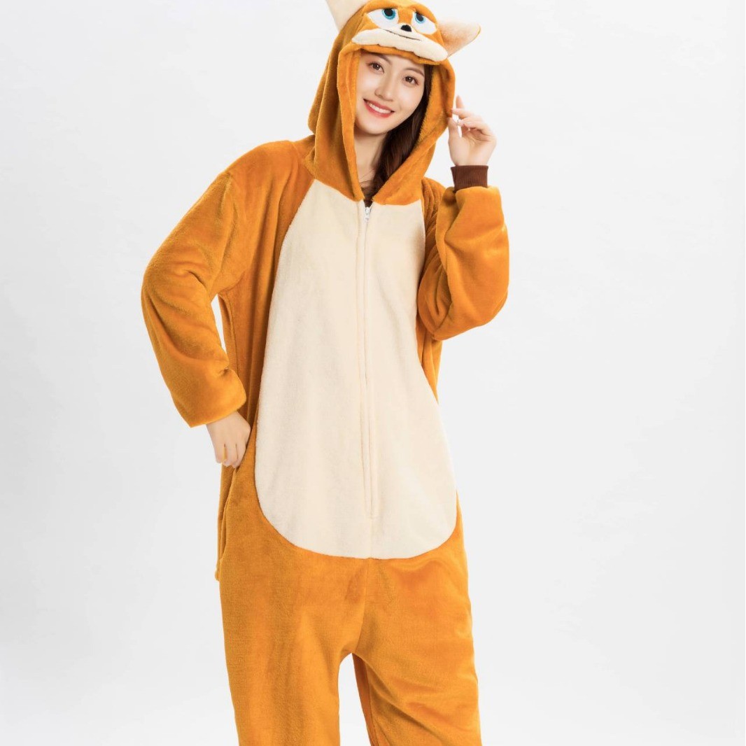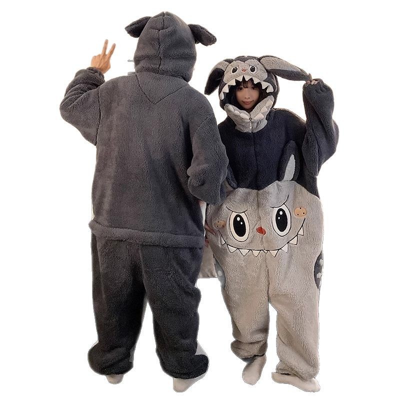 가을, 겨울 호랑이 회색 늑대 플란넬 동물 Zhongli 홈웨어 원피스 잠옷 만화 커플 귀여운 노란색 여우스토어 가기