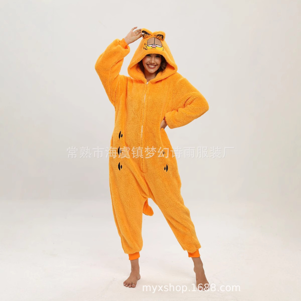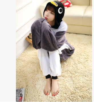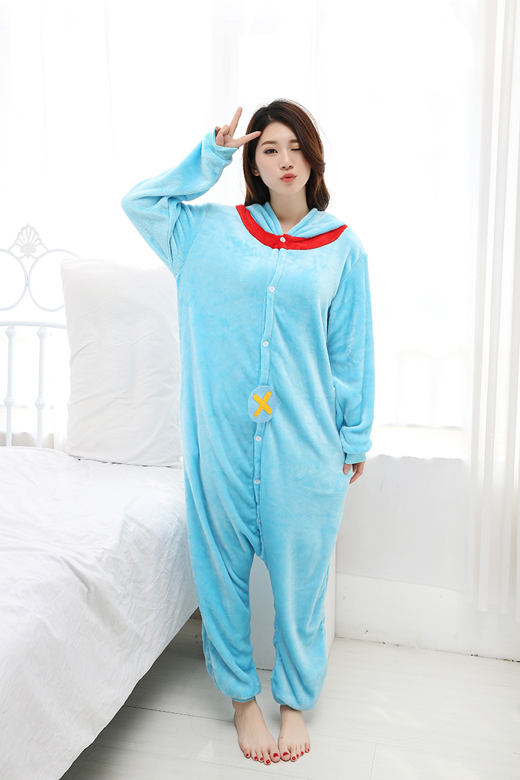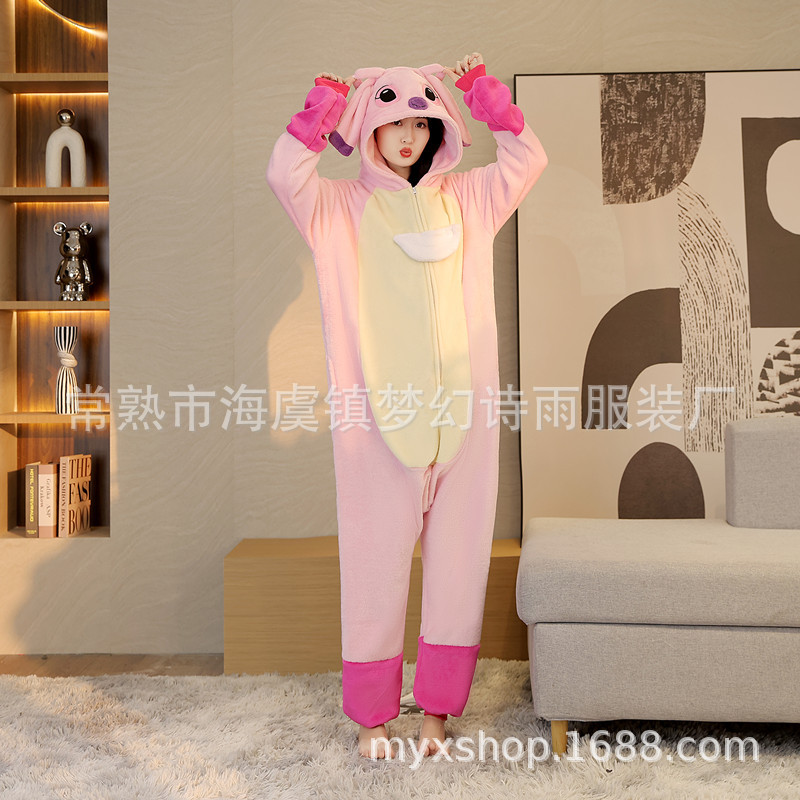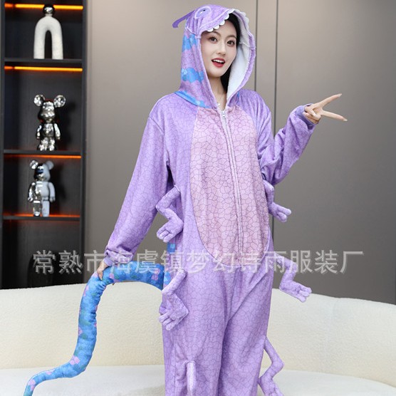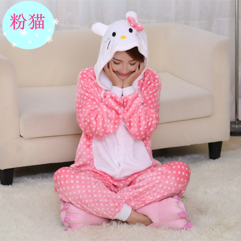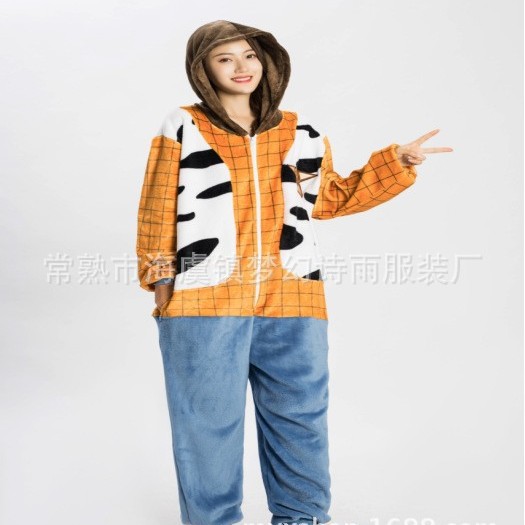 가을, 겨울 호랑이 회색 늑대 플란넬 동물 Zhongli 홈웨어 원피스 잠옷 만화 커플 귀여운 노란색 여우스토어 가기