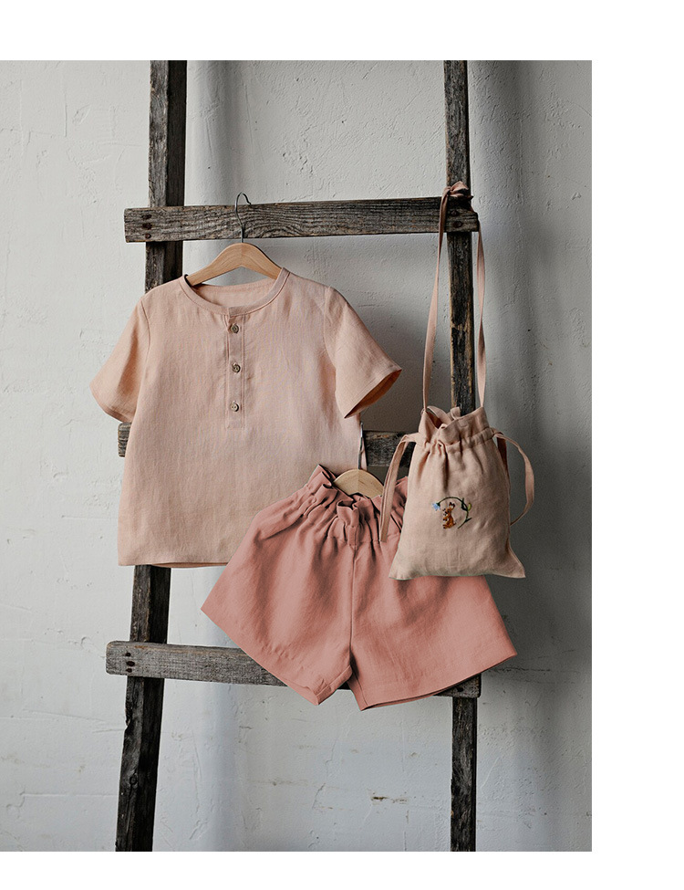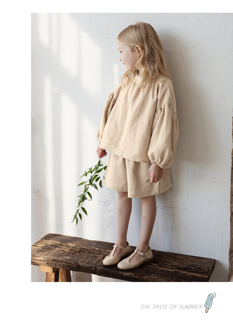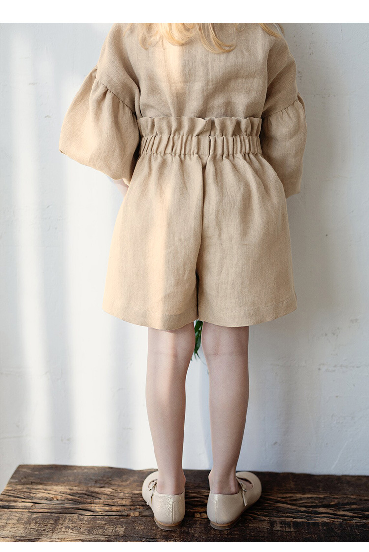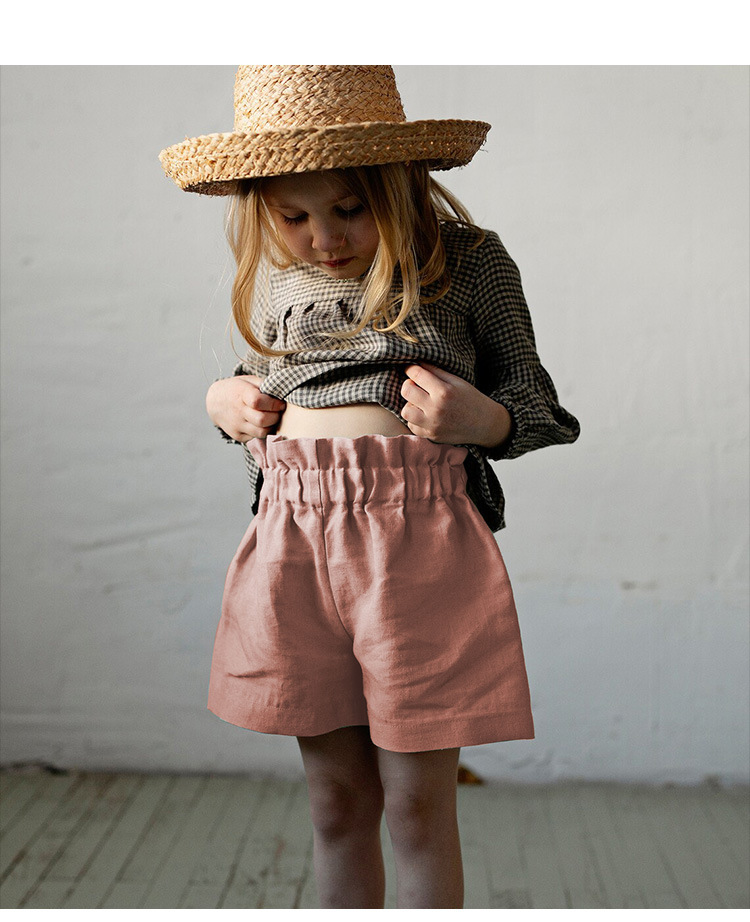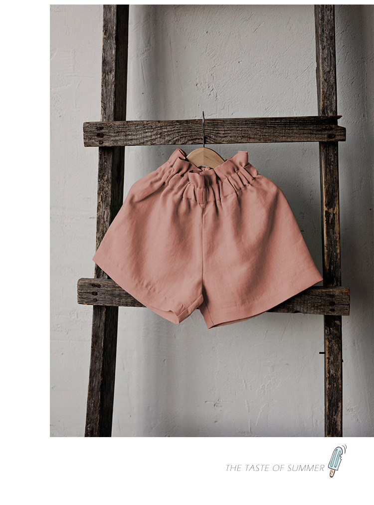 여아면과 린넨 탄성 허리 반바지 2023 봄과 여름 달콤한 바람 소녀 여름 옷 머리카락의 새로운 한국어 버전스토어 가기