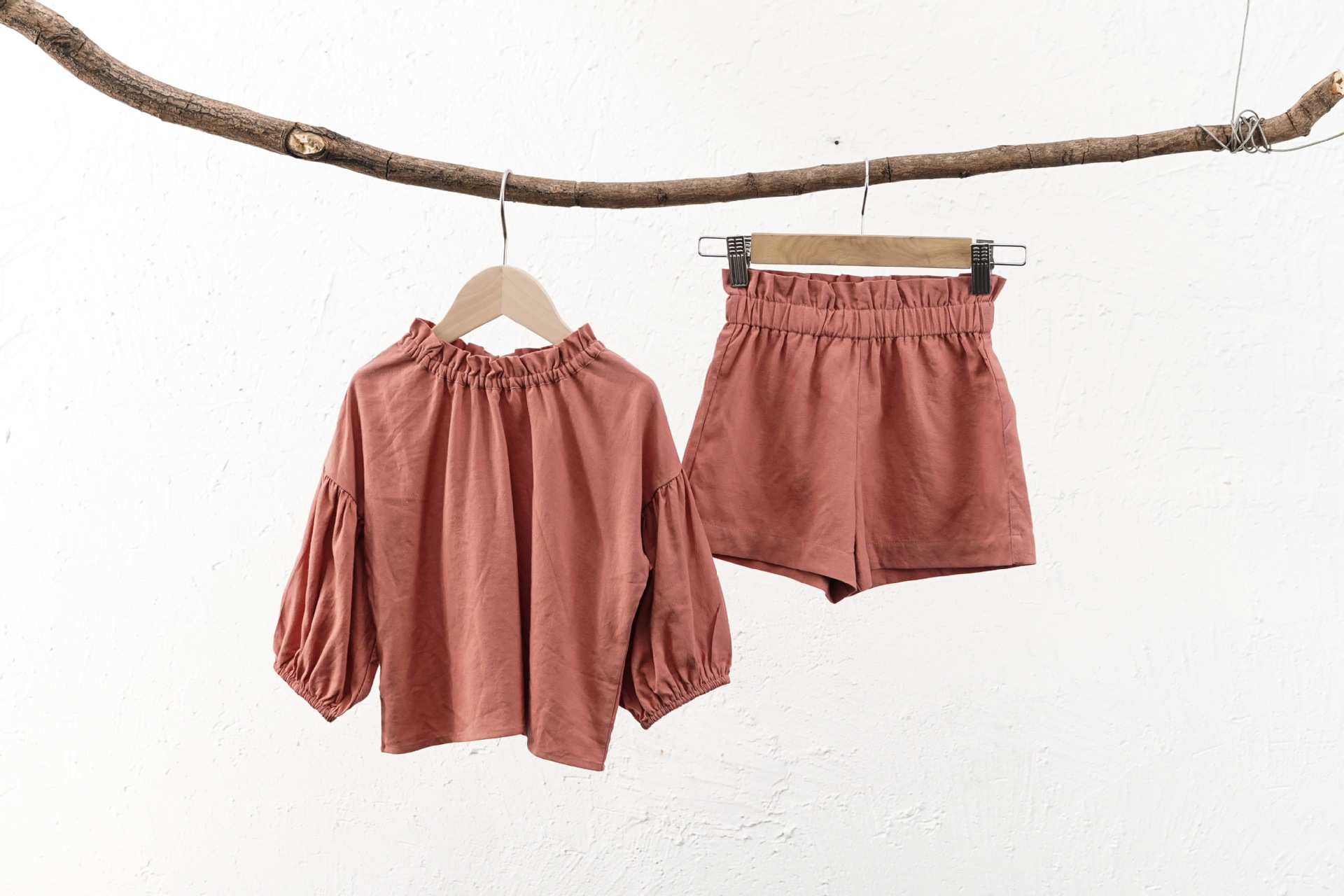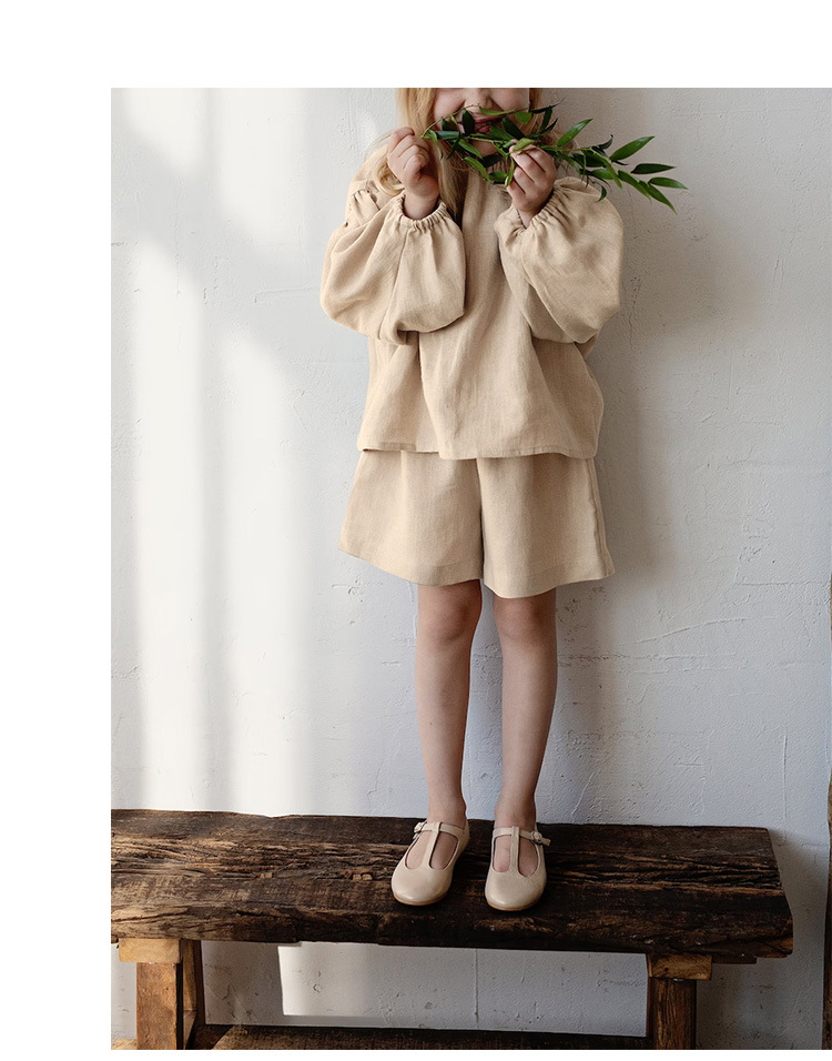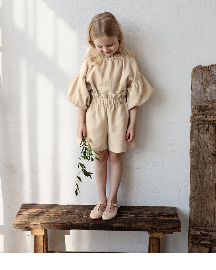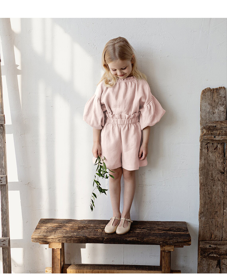 여아면과 린넨 탄성 허리 반바지 2023 봄과 여름 달콤한 바람 소녀 여름 옷 머리카락의 새로운 한국어 버전스토어 가기