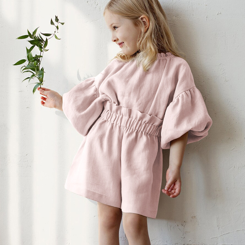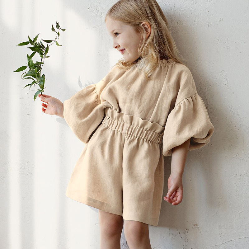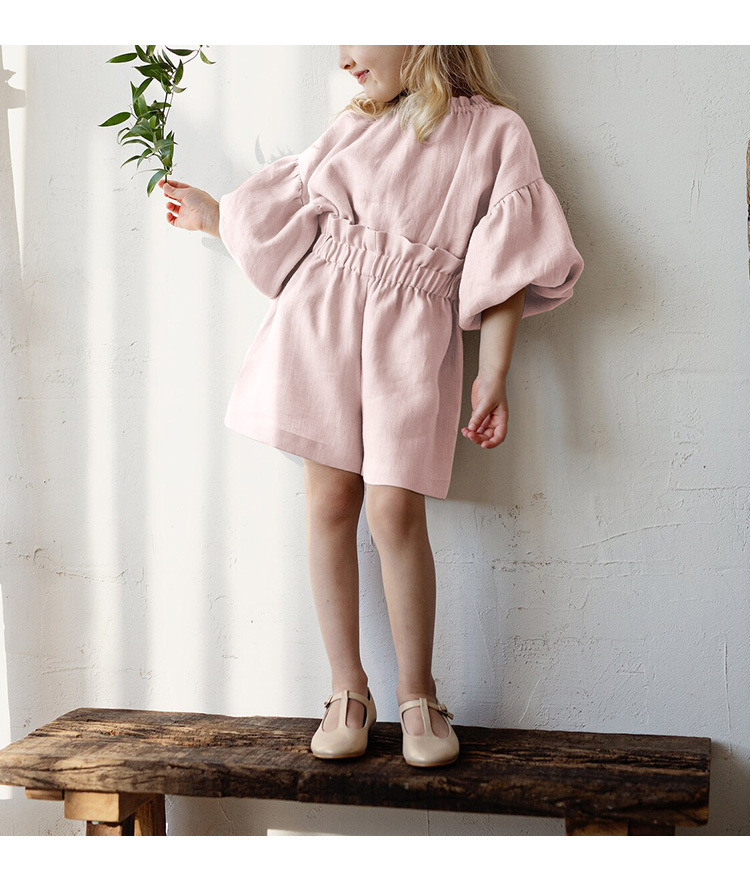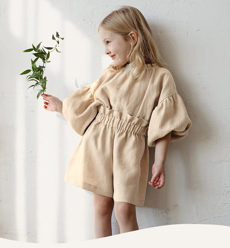 여아면과 린넨 탄성 허리 반바지 2023 봄과 여름 달콤한 바람 소녀 여름 옷 머리카락의 새로운 한국어 버전