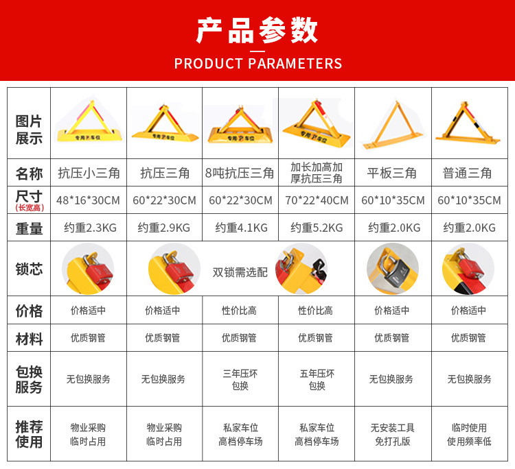 • 8 톤 압축 삼각형 + 나사 방수 잠금 장치