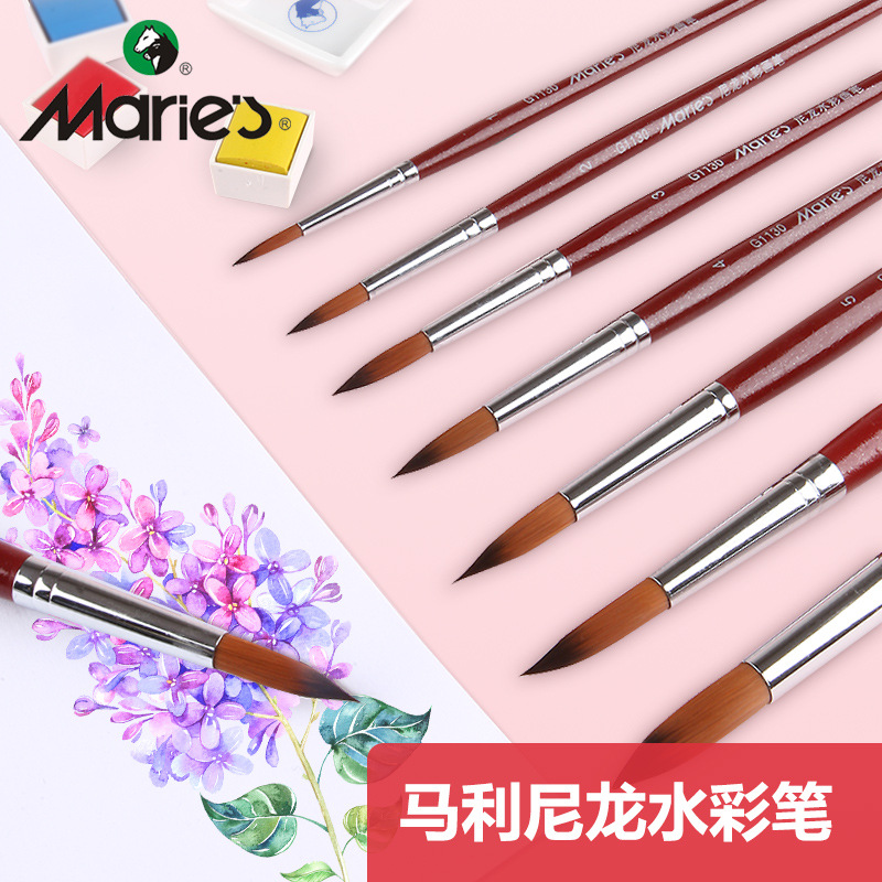 Marley G1130 나일론 수채화 펜 초보자 손으로 그린 유화 구 아슈 초등학교 미술 도구 단일 뾰족한스토어 가기
