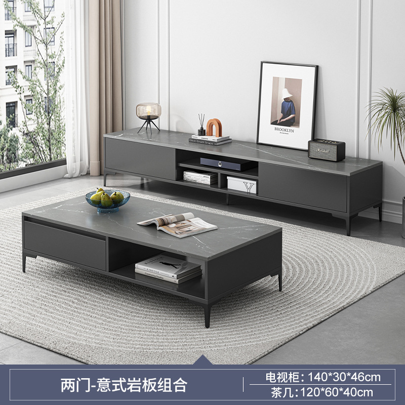 • 140 2 도어 이탈리안 락 플레이트 그레이 TV 캐비닛 + 120 커피 테이블