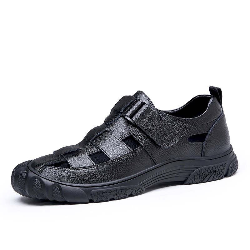 2025 새로운 여름 중공 가죽 샌들 정품 가죽 통기성 미끄럼 방지 야외 등산 캐주얼 가죽 신발 남자 구멍 신발스토어 가기