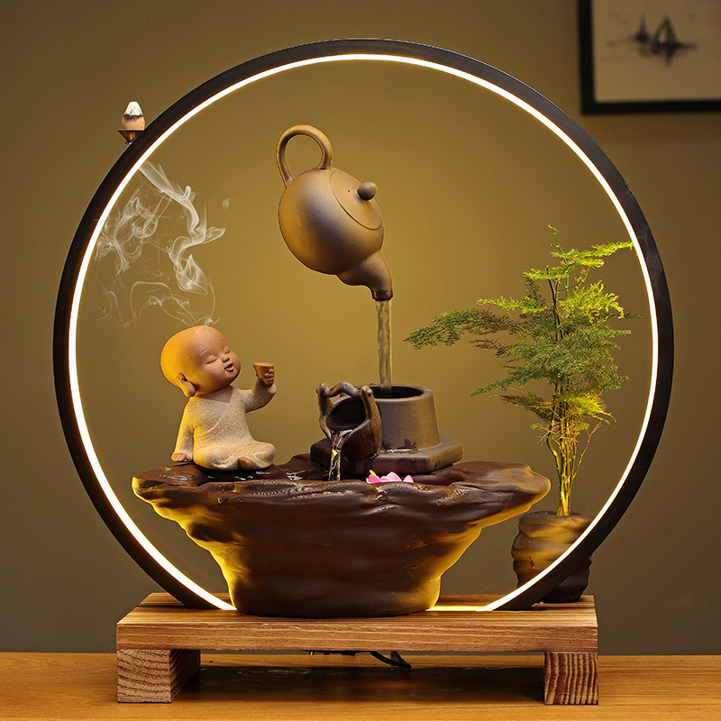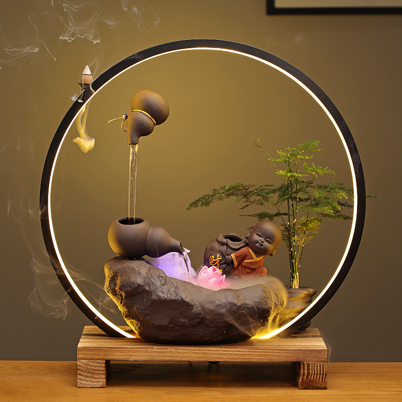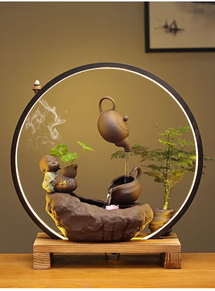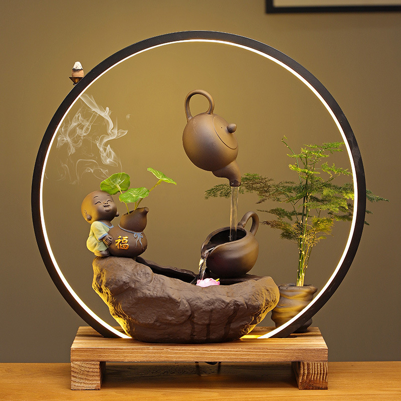 교수형 냄비 흐르는 물 장식품 분수 분무 사무실 베란다 거실 역류 향 버너 데스크탑 행운의 흐르는 물 풍경