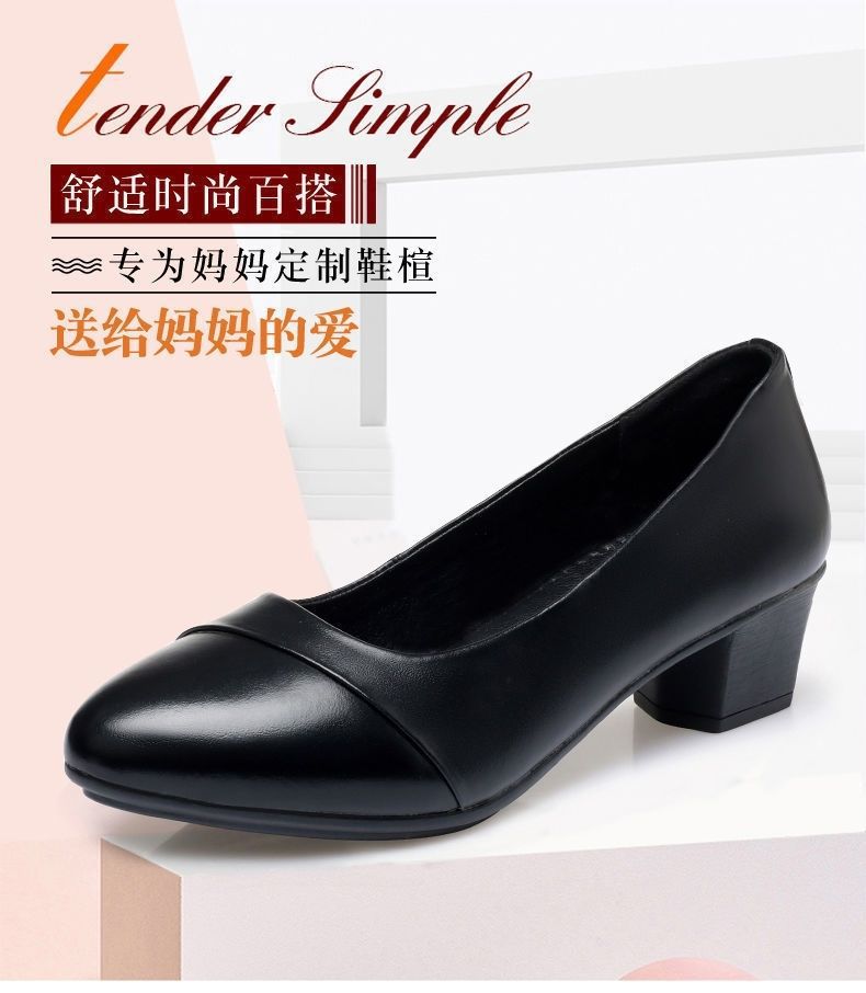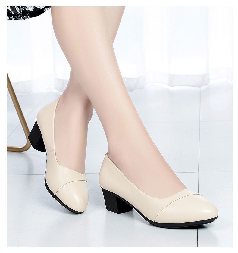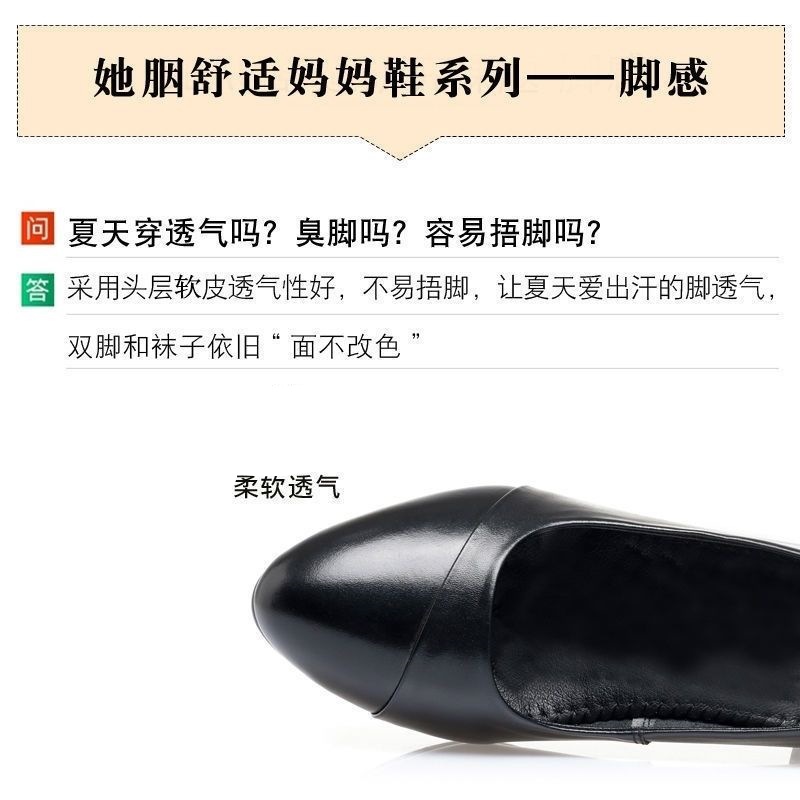 부드러운 가죽 단층 신발 여성용 낮은 굽 봄과 여름 부드러운 밑창 편안한 미끄럼 방지 패션 가죽 신발 여성 신발 중간 굽 엄마 신발 작업 신발스토어 가기