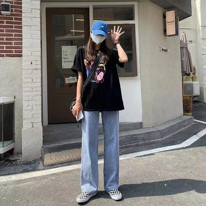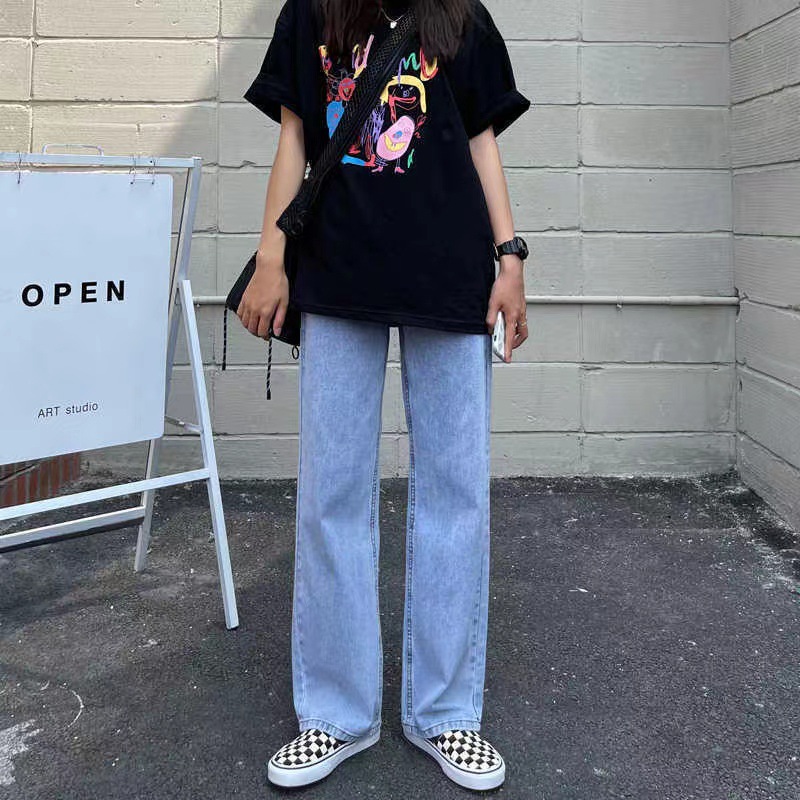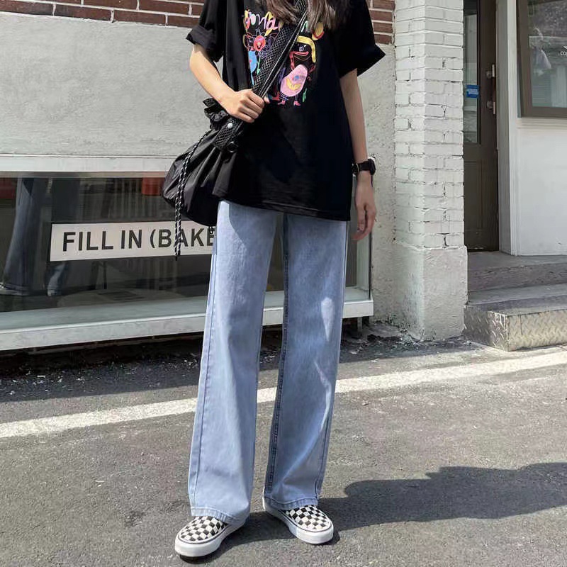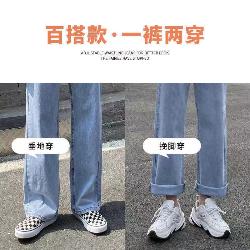 하이 웨이스트 얇은 청바지 여성용 스트레이트 느슨한 봄과 여름 새로운 슬림 룩 높은 바닥 와이드 레그 팬츠 드레이프 바지스토어 가기