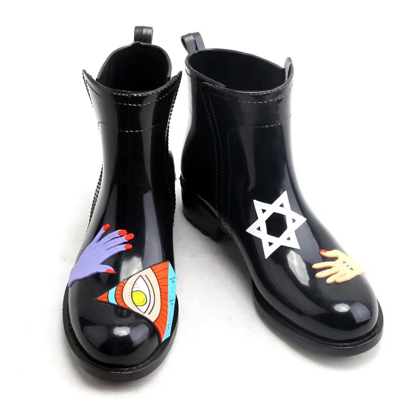 대외 무역 블랙 손으로 그린 장화 여성용 부드러운 일본과 한국 젊은 여성의 장화 정원 신발 고무 신발 물 신발 로우 탑