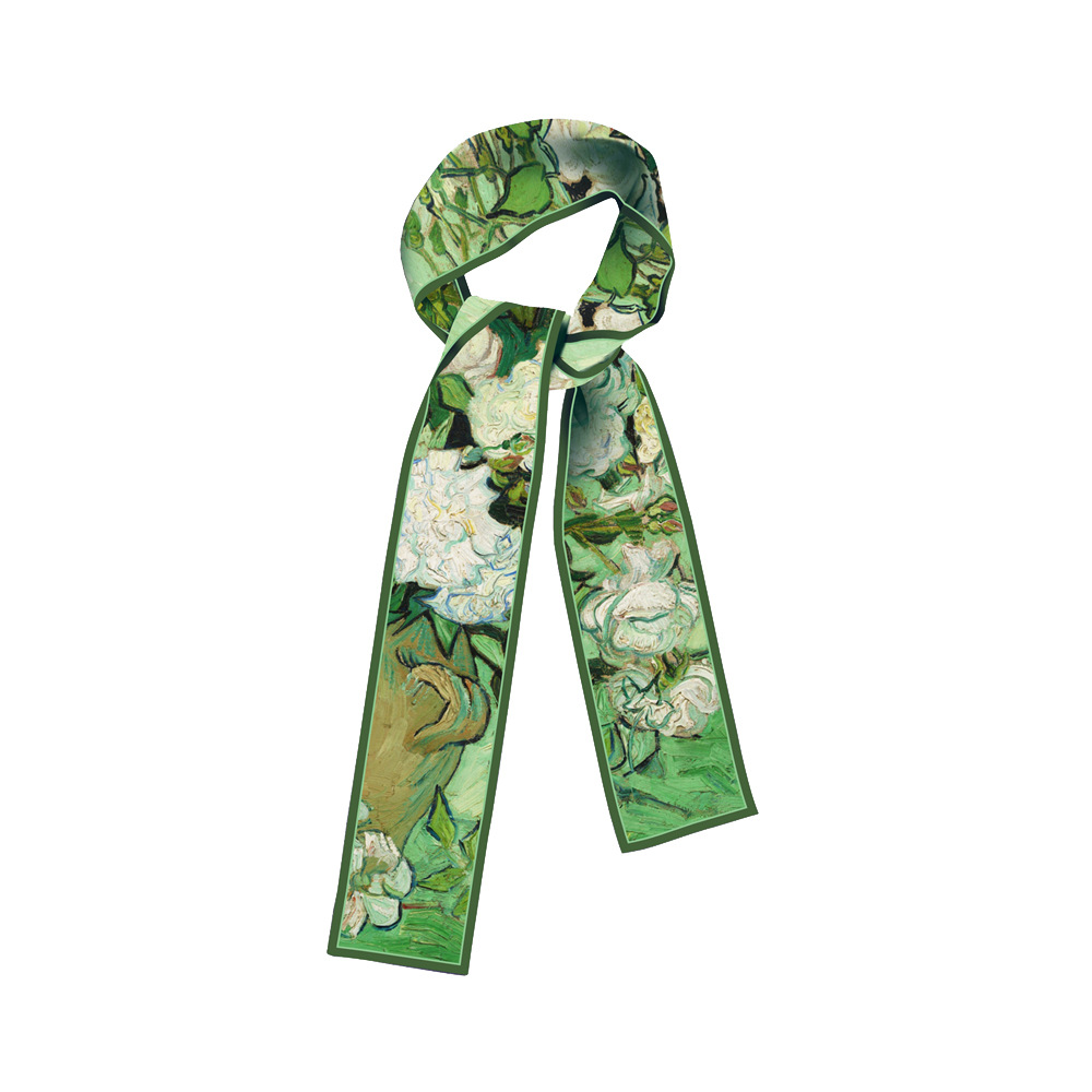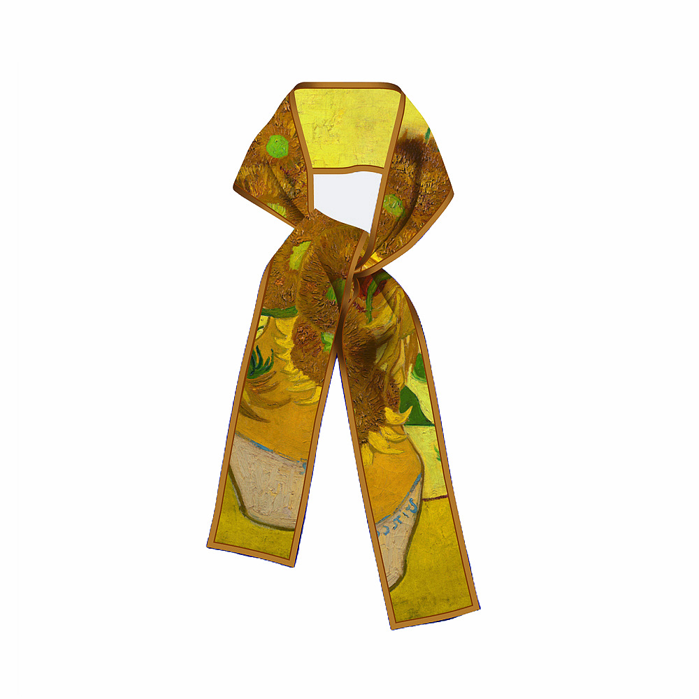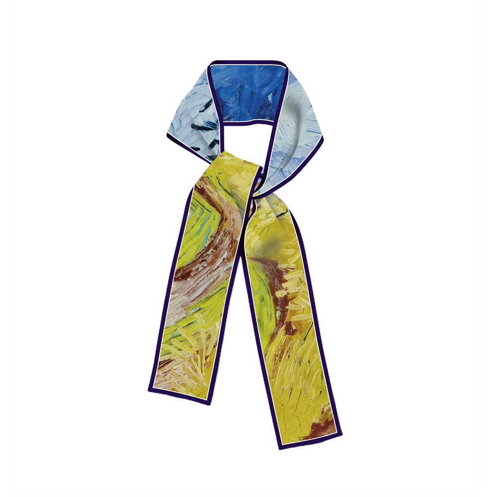 반 고흐 유화 시리즈 온라인 연예인 라이브 판매 새로운 스타일 여성 패션 우아한 실크 스카프 하이 퀄리티 스카프 리본 머리 스카프스토어 가기