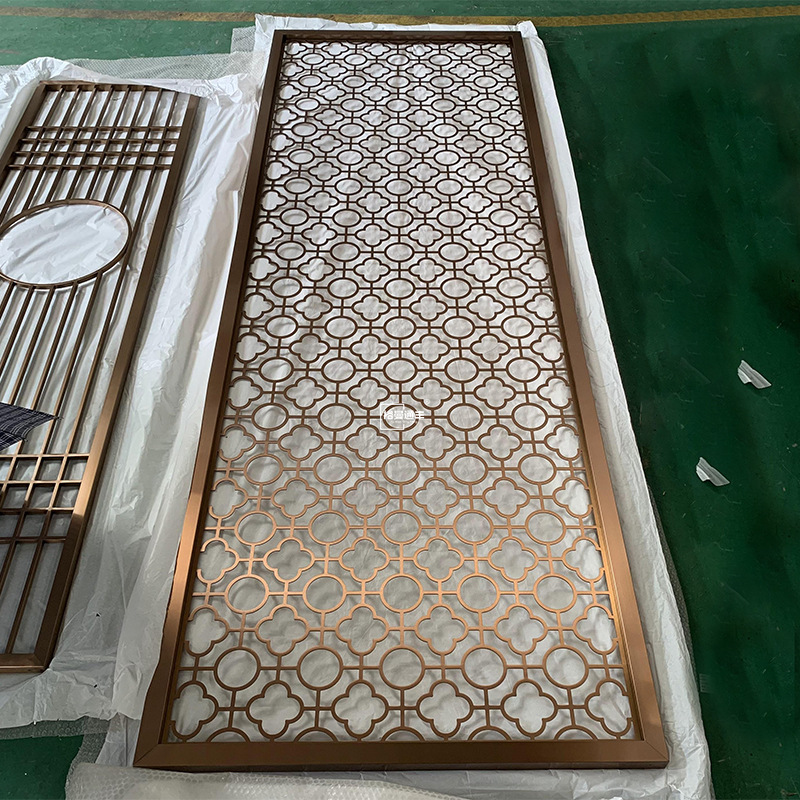 호텔 영업부 엔지니어링 금속 그릴 스크린 로즈 골드 스테인레스 스틸 격자 화면 파티션 장식 배경 벽