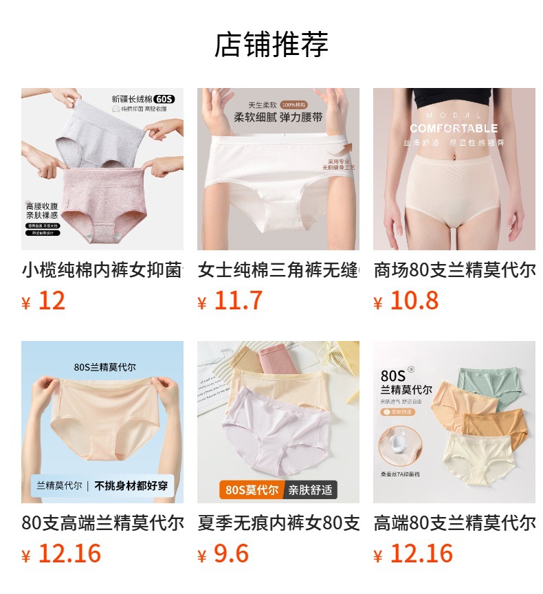 쇼핑몰 80수 렌징 모달 반바지 도매 봄 여름 삼각팬티 무봉제 통기성 하이웨이스트 여성 속옷스토어 가기