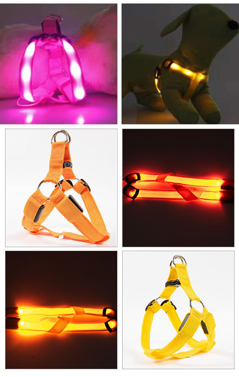 발광 개 가슴과 등 견인 로프 조끼 애완 동물 가슴 스트랩 반사 통기성 고양이 걷는 로프 개 로프