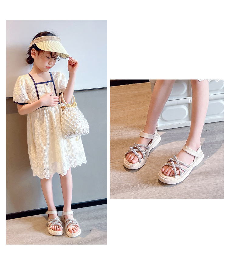 여자 샌들 2025 여름 새로운 스타일 어린이 스타일 로마 신발 작은 공주 샌들 큰 어린이 소녀 해변 신발스토어 가기