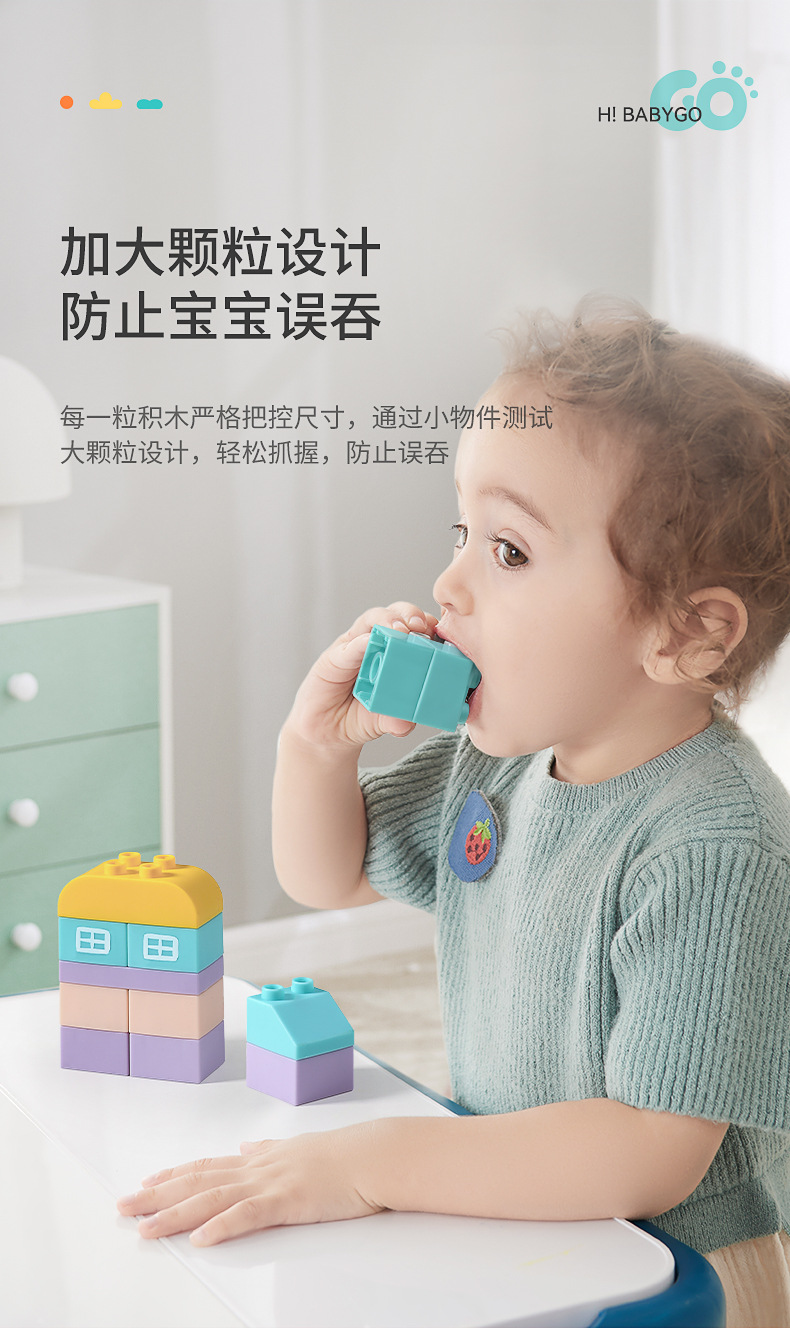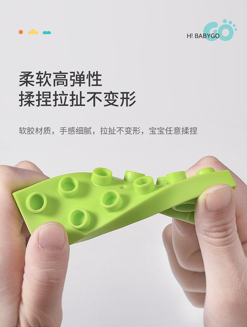 베이비고 유아용 부드러운 고무 블록 6개월 이상 어린이 조립 장난감 대형 블록