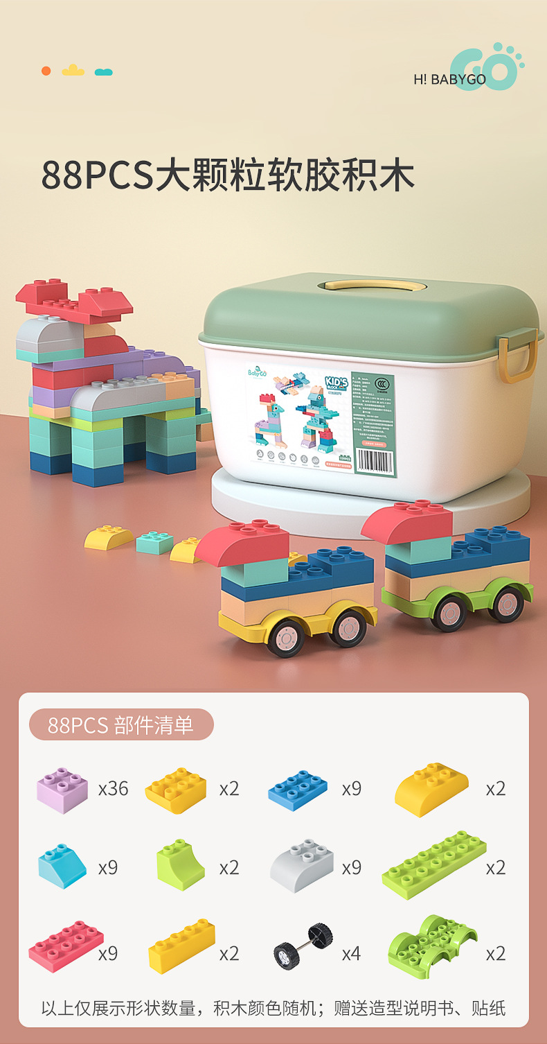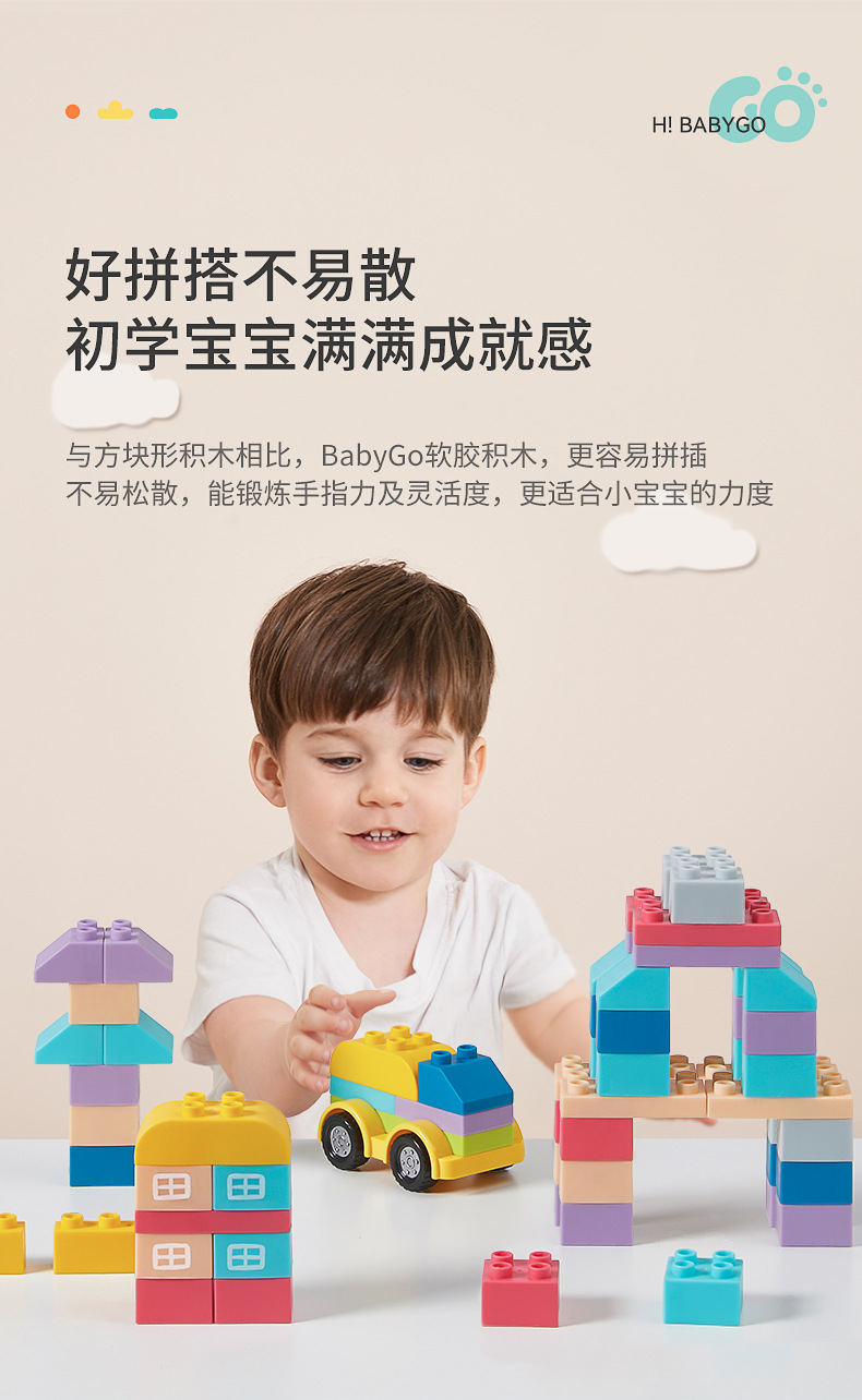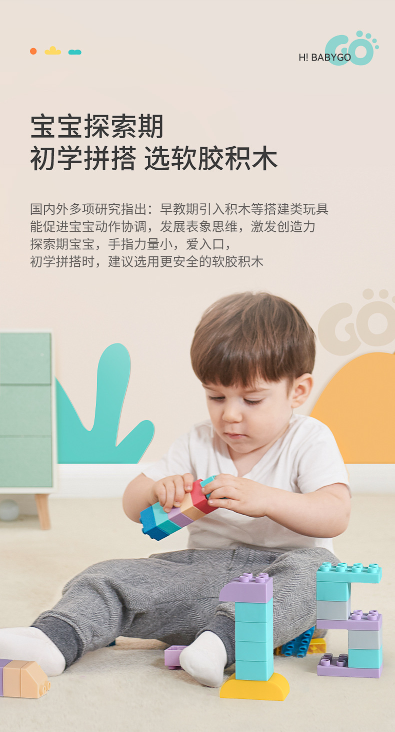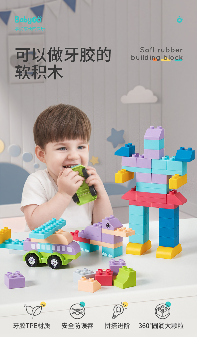 베이비고 유아용 부드러운 고무 블록 6개월 이상 어린이 조립 장난감 대형 블록스토어 가기