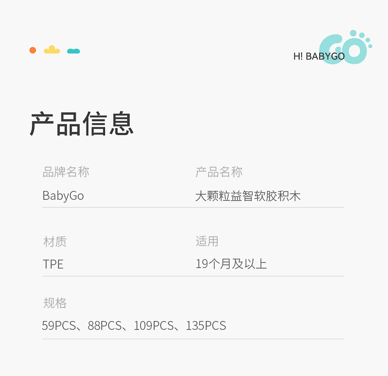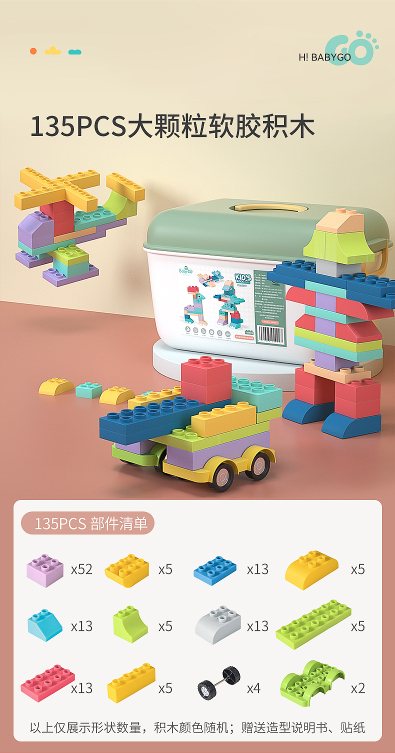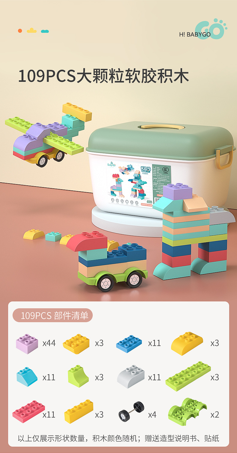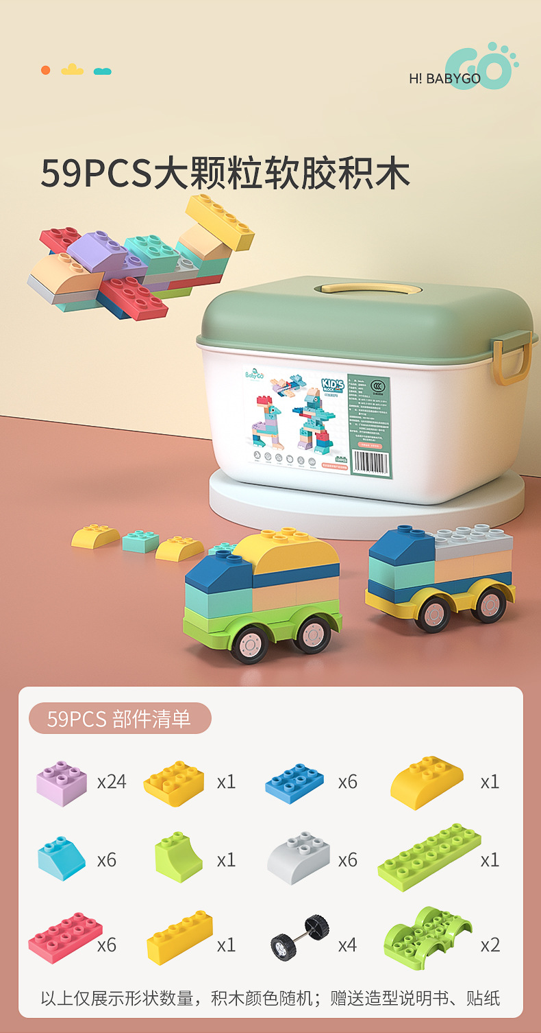 베이비고 유아용 부드러운 고무 블록 6개월 이상 어린이 조립 장난감 대형 블록스토어 가기