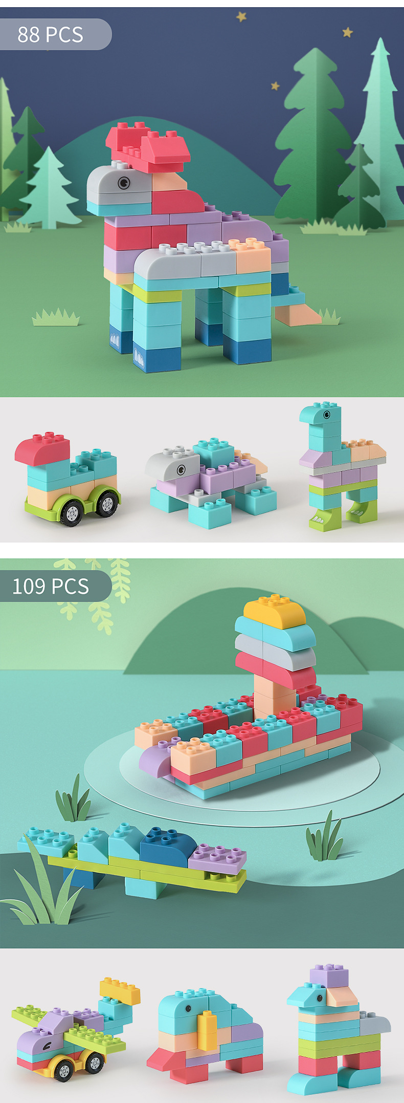 • 109 개의 대형 입자 빌딩 블록 [재미있는 스티커 + 휴대용 보관함 보내기]