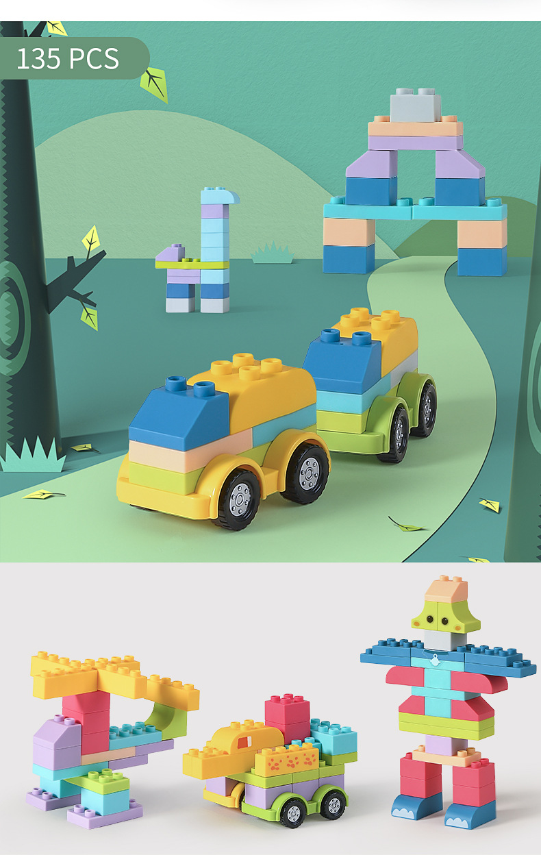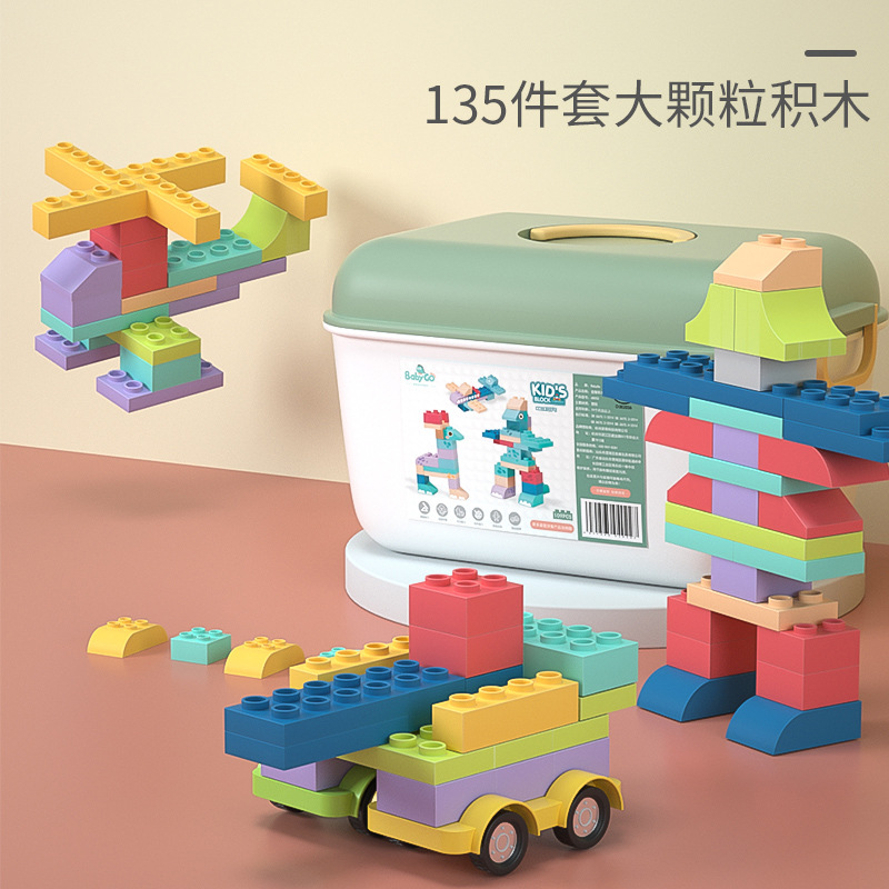 • 대형 입자 빌딩 블록 135 개 [재미있는 스티커 + 휴대용 보관 상자를 보내]