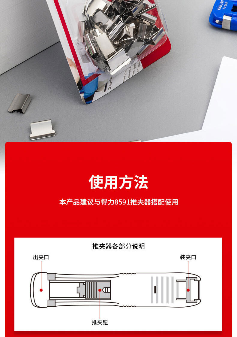 델리 8592 푸셔 보충 클립 문구 스테이플러 종이 바인딩 종이 고정 금속 작은 티켓 클립 도매스토어 가기