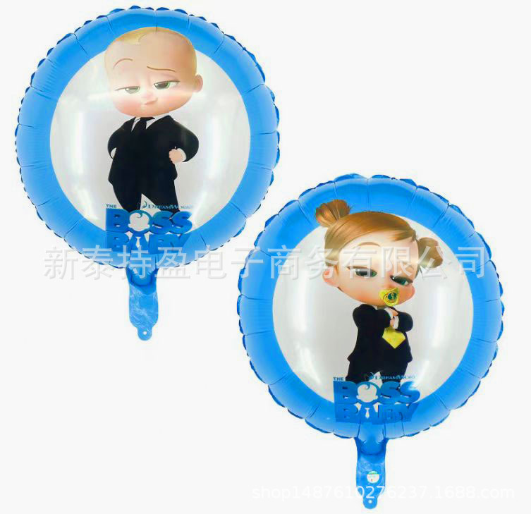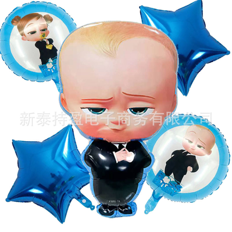 【产品尺寸】bossbaby异形46.5*78.6cm、bossbaby铝膜圆球18寸、套装1boss baby异形+2双面印刷18寸圆球+2蓝色18寸五星