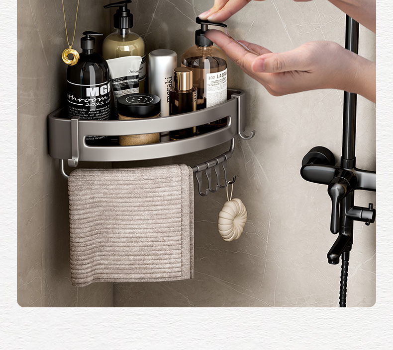 홀프리 건 그레이 욕실 랙 더블 레이어 삼각형 벽걸이 형 욕실 공간 알루미늄 화장실 코너 욕실 수납스토어 가기