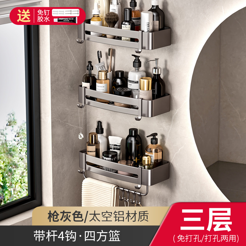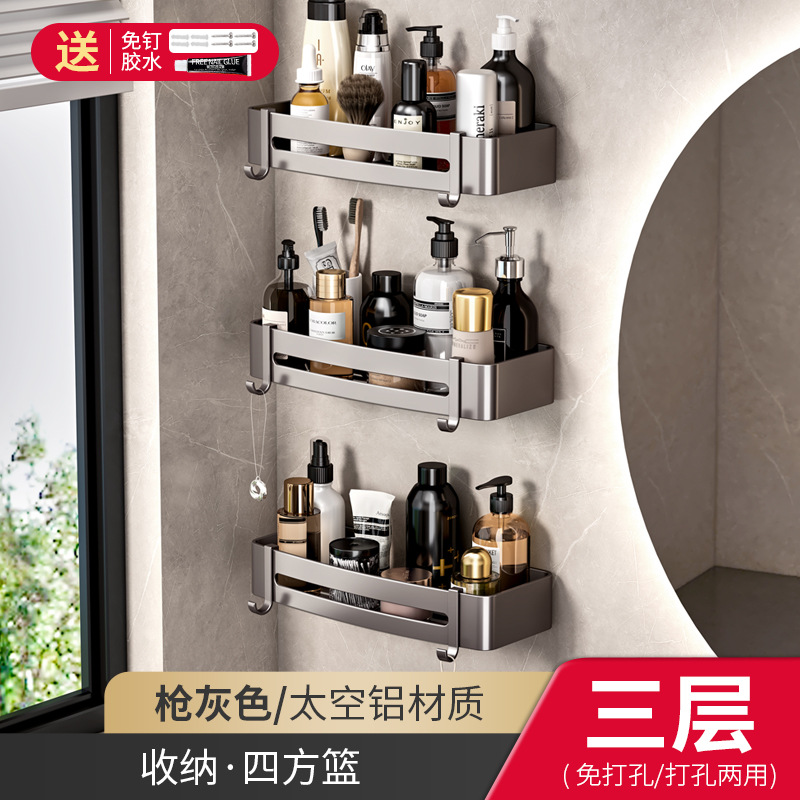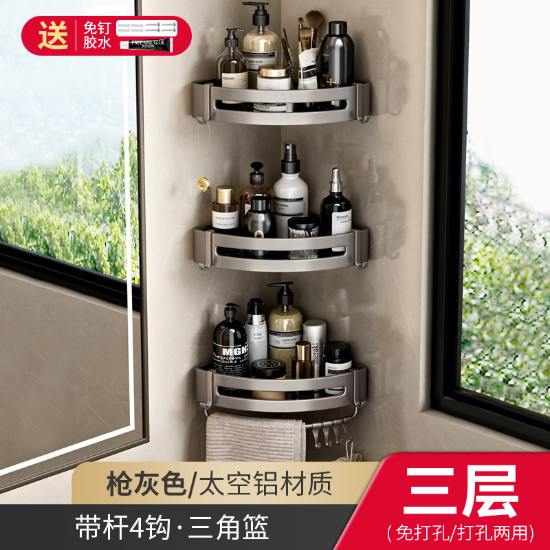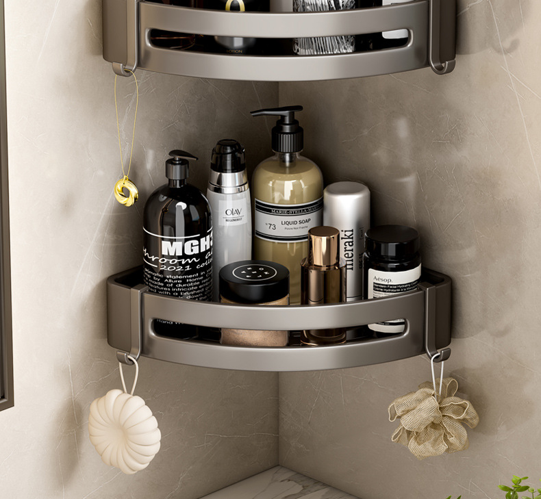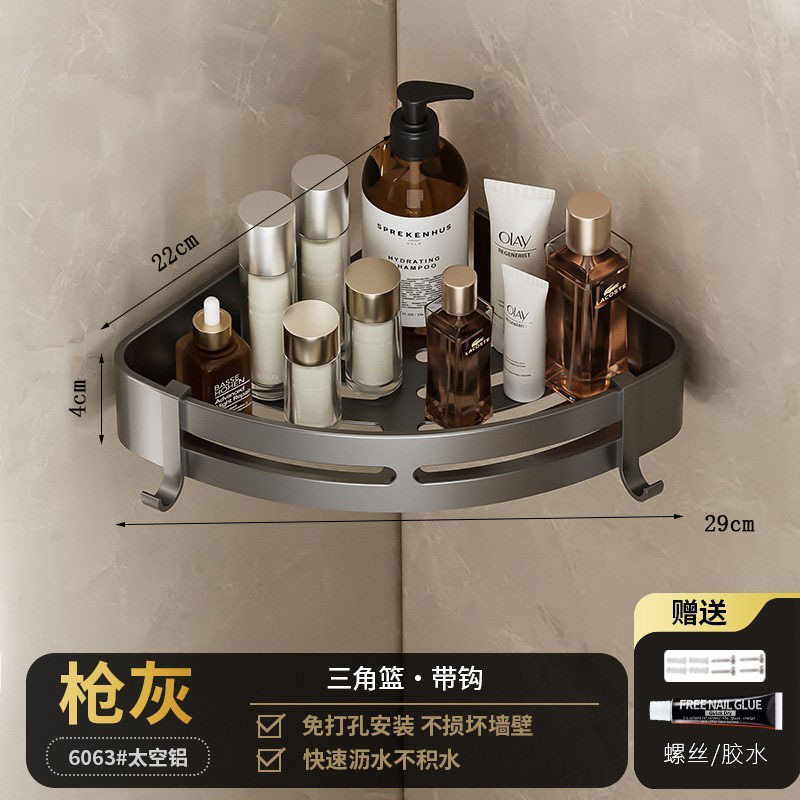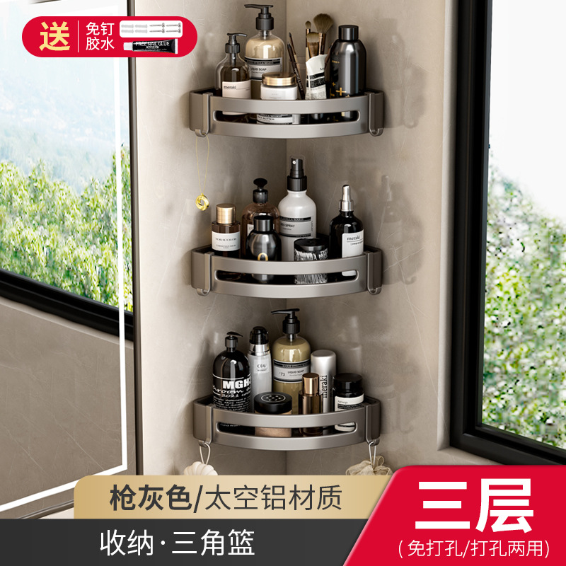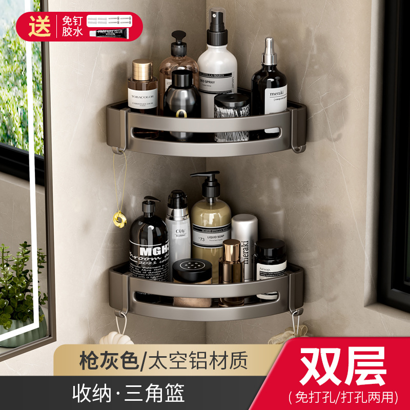 홀프리 건 그레이 욕실 랙 더블 레이어 삼각형 벽걸이 형 욕실 공간 알루미늄 화장실 코너 욕실 수납