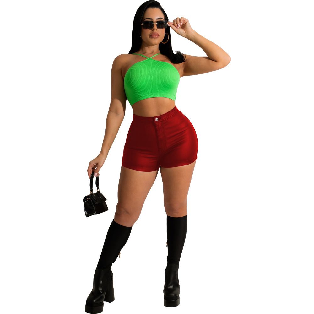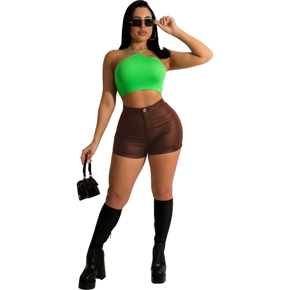 BX6088 크로스 보더 유럽과 미국 여성 의류 아마존 독립 역 여름 새로운 패션 가죽 반바지스토어 가기