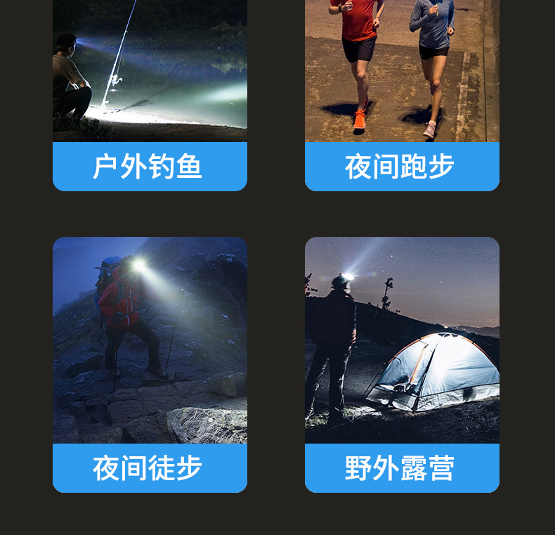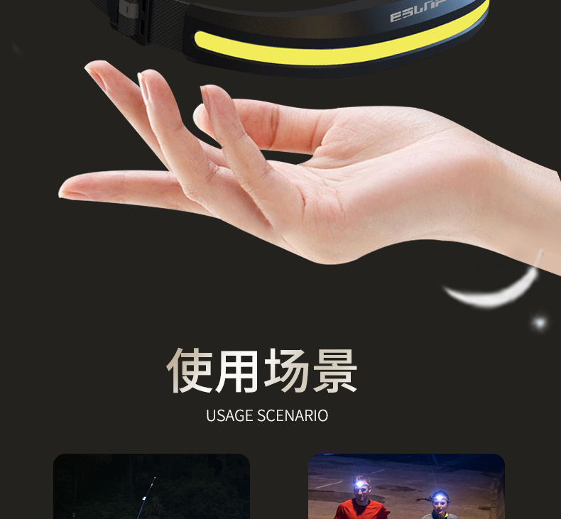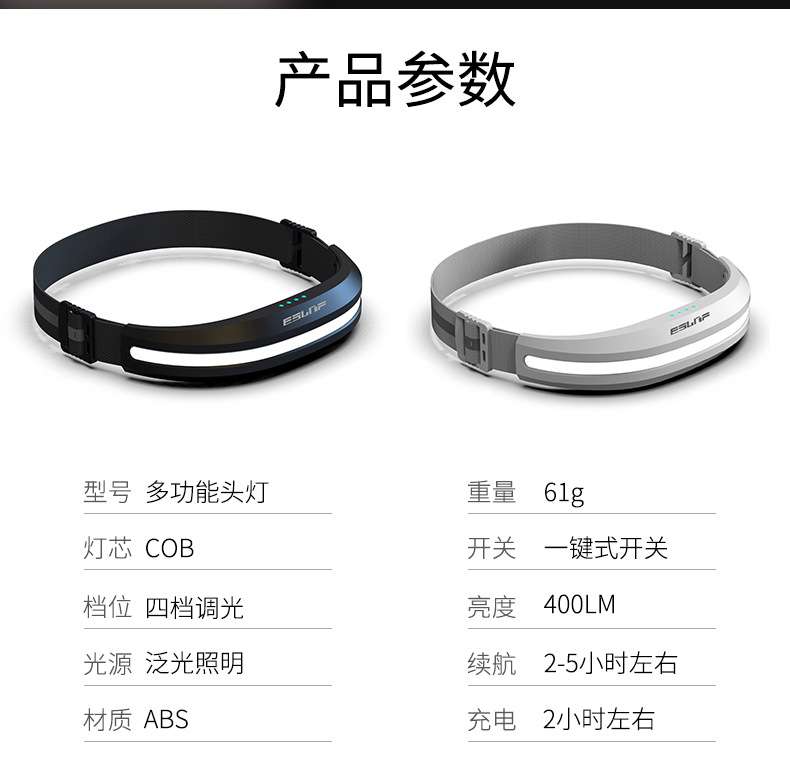 새로운 USB 충전식 러닝 라이트 개암 나무 작업 조명 야외 하이킹 캠핑 방수 야간 러닝 헤드 마운트 투광 조명 헤드 라이트