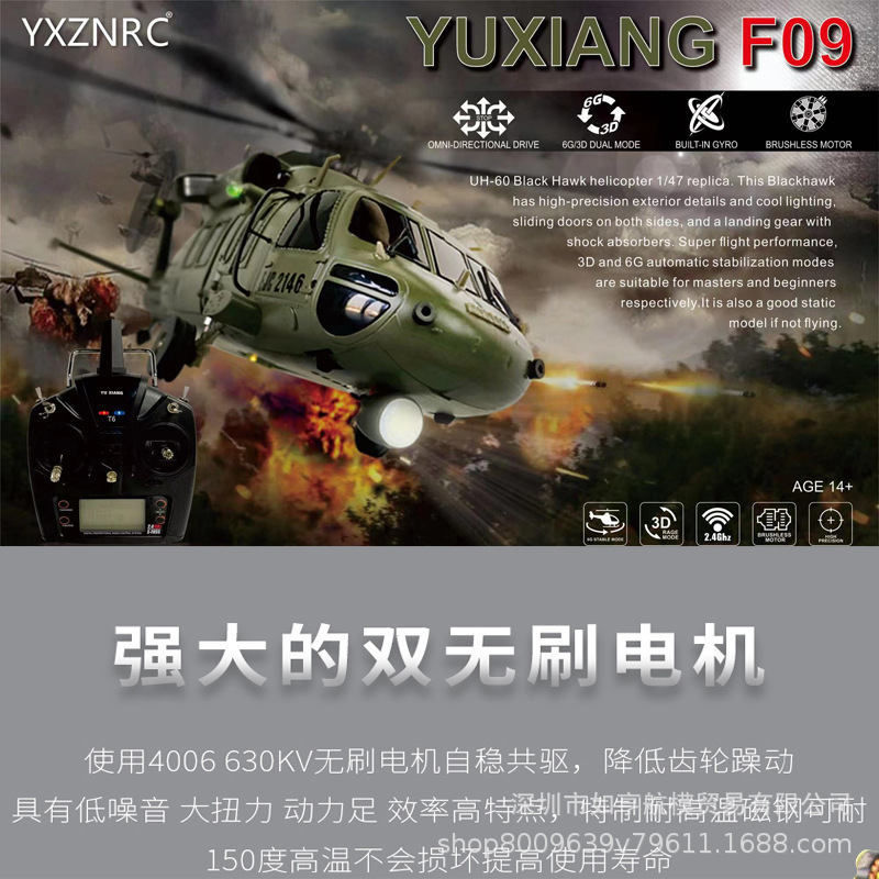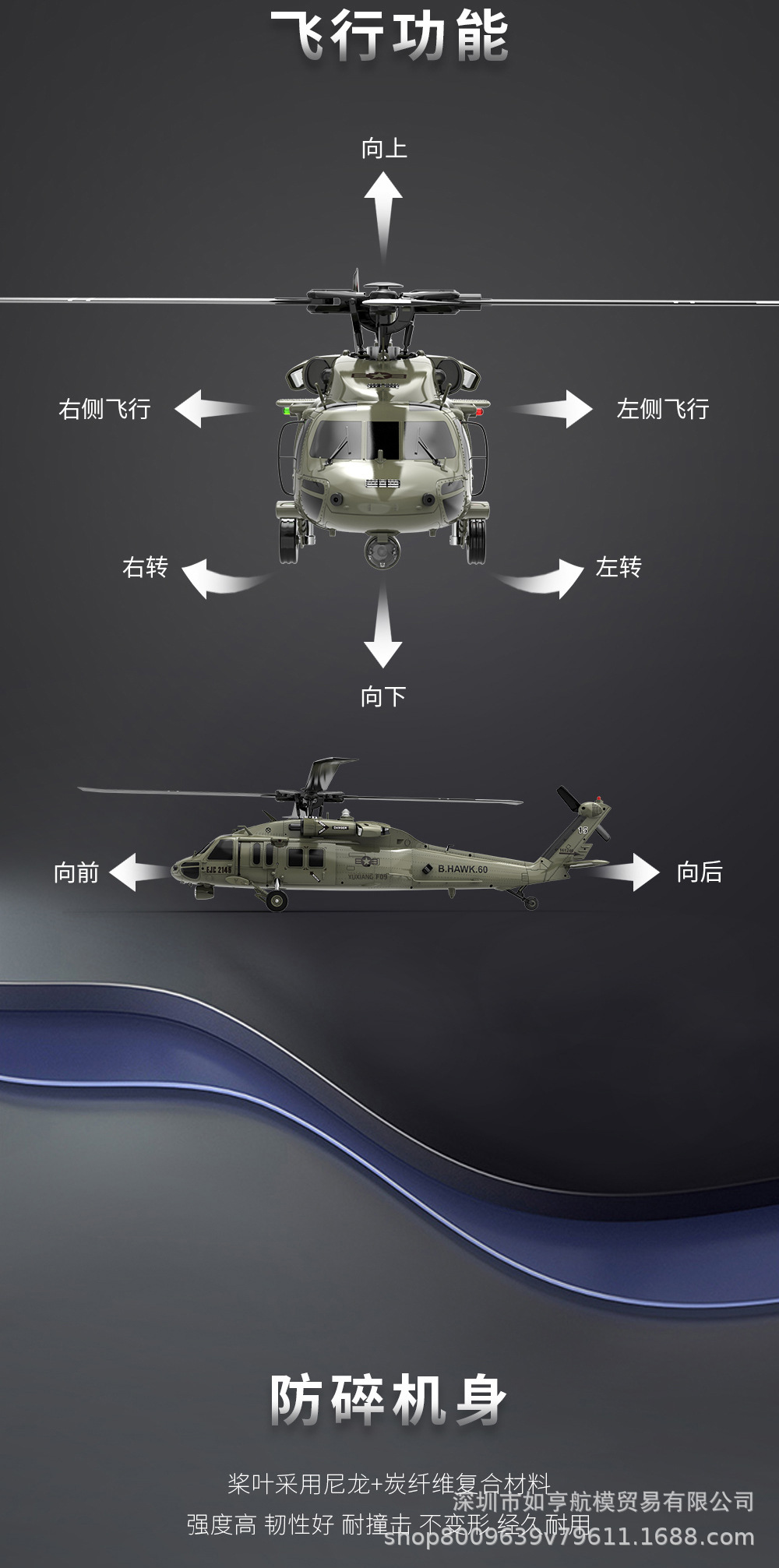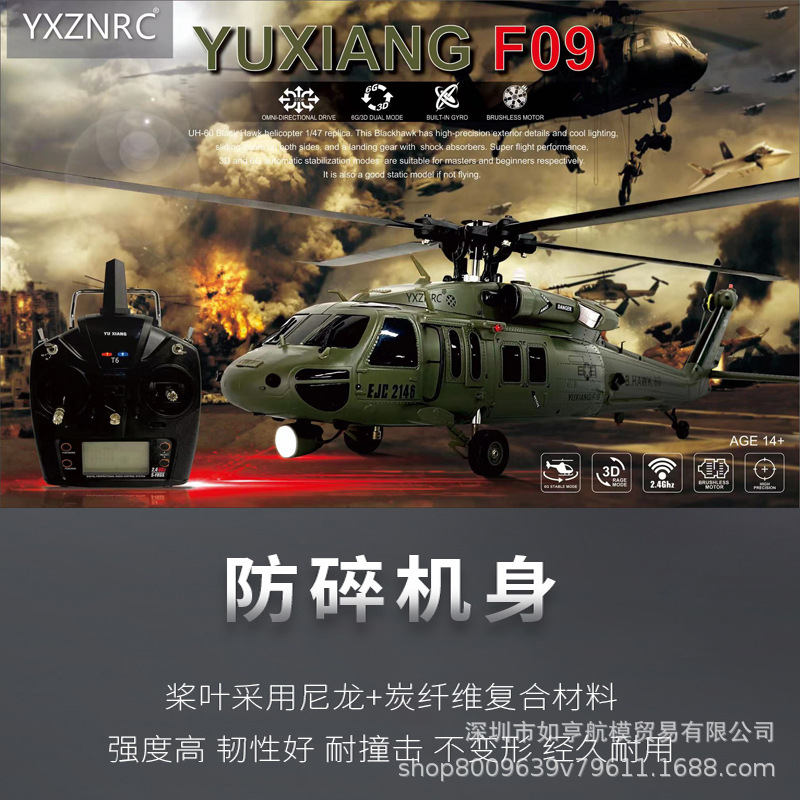 유샹 F09V 블랙호크 UH60 6채널 3D 스턴트 원격 조종 무인 전투 헬리콥터 모형