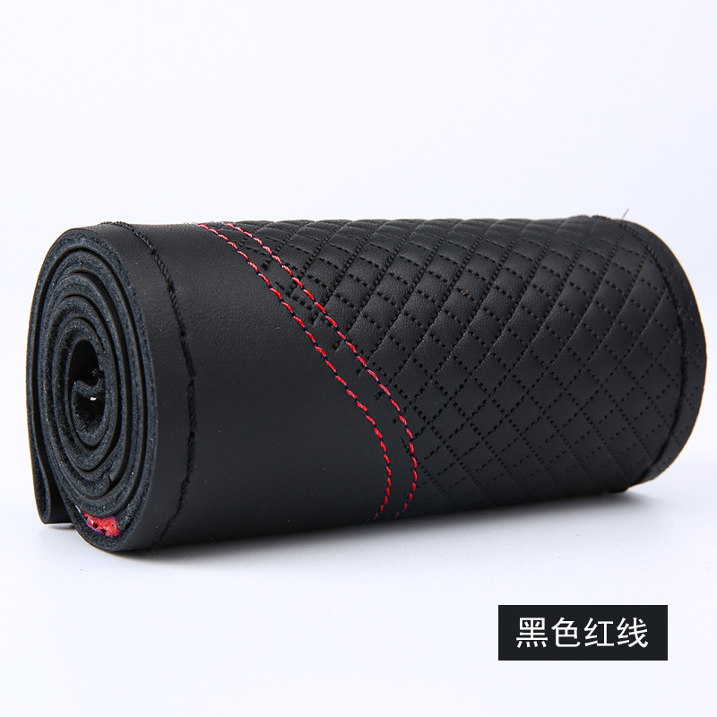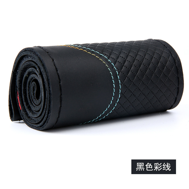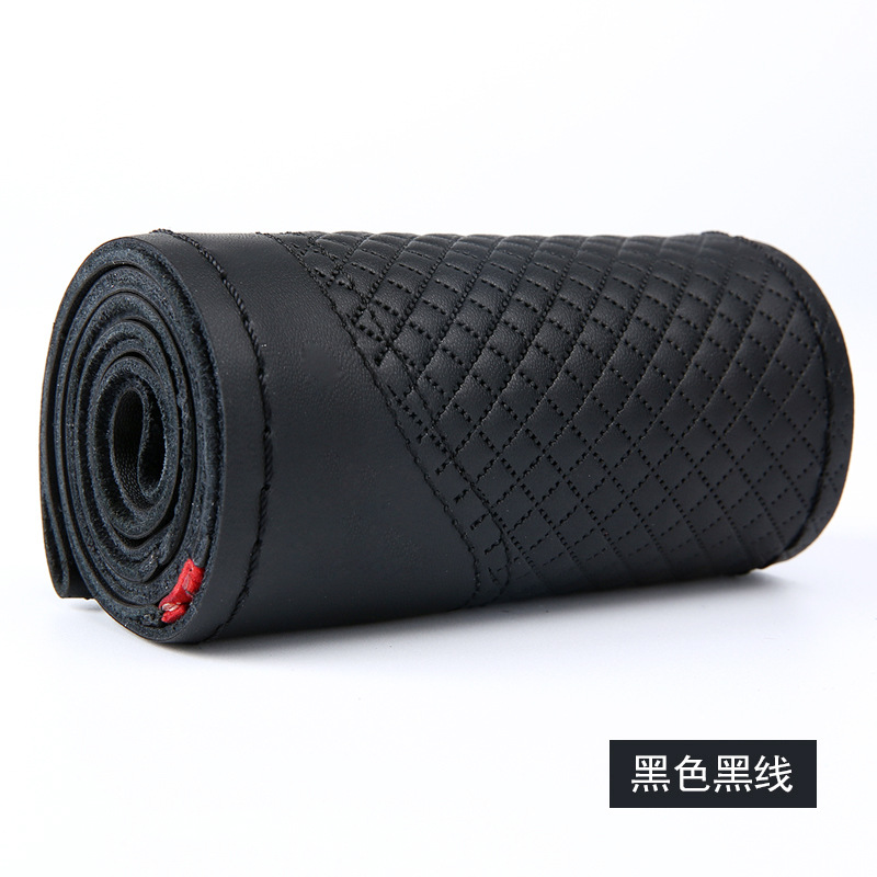 탑 레이어 소가죽 엠보싱 더블 라인 핸드 스티치 핸들 커버 사계절 유니버설 가죽 자동차 핸들 커버 #1125