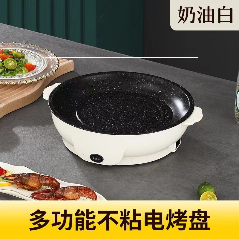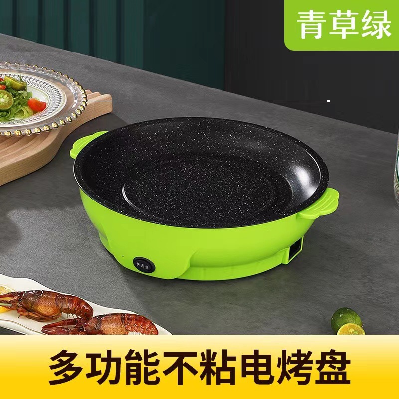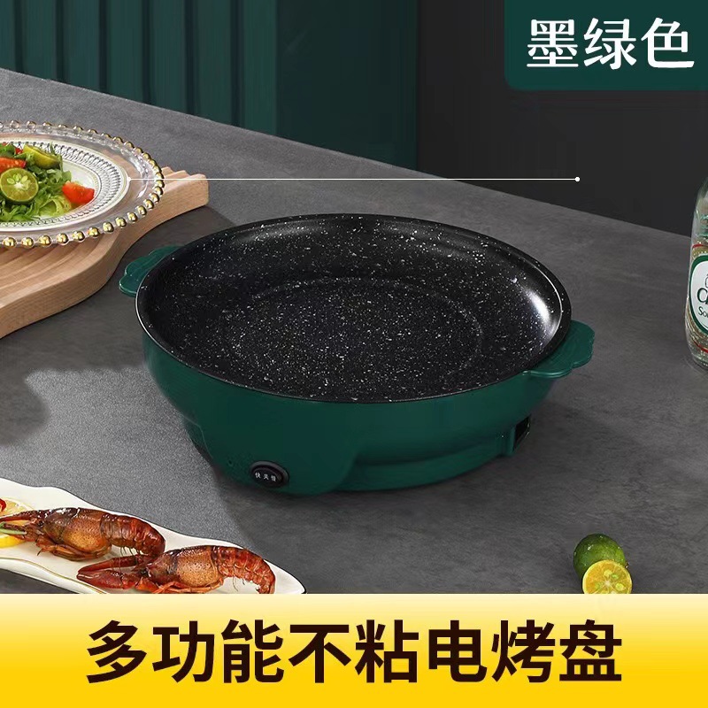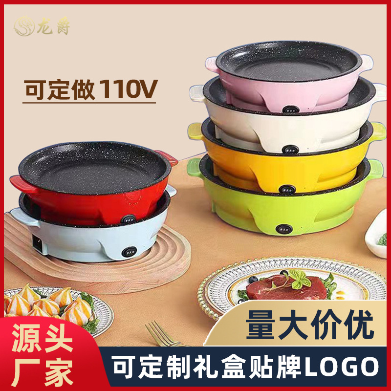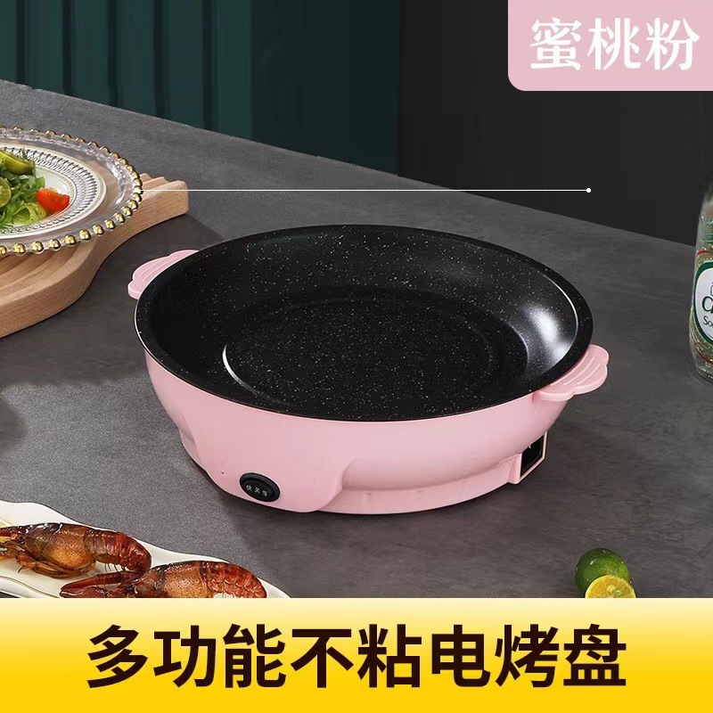 테이크 아웃 바베큐 휴대용 더블 기어 온도 제어 전기 오븐 라운드 Maifanite 튀김 바베큐 팬 다기능 전기 그릴 팬