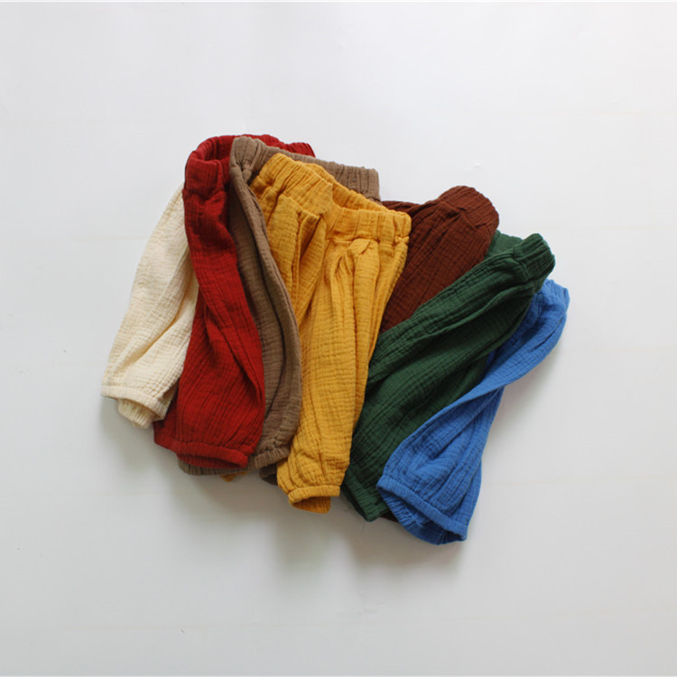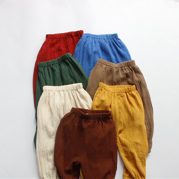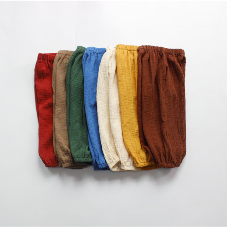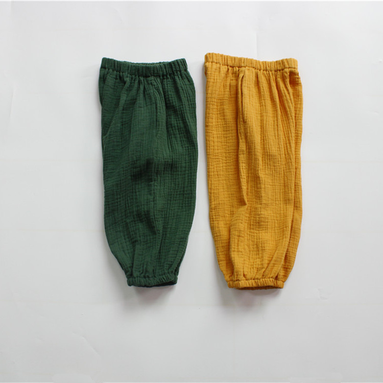 아동용 바지, 여름 남아용 바지, 한국식 면 거즈 부드러운 캔디 컬러 여아용 모기 방지 바지, 통기성 드롭 배송